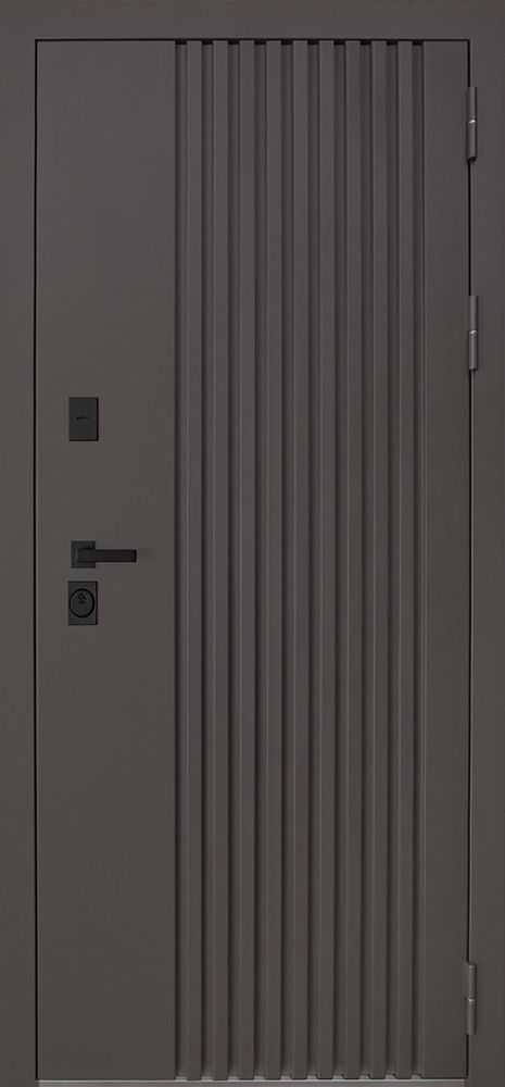 - Внешняя отделка: лист металла 1,8 мм, вертикальные рейки, два слоя покрытия, гладкий наличник