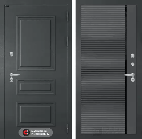 Сталь 1,5 мм, закрытый утепленный короб, усиливающие 2 ребра жесткости (вертикальные П-образные)
