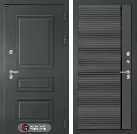 Сталь 1,5 мм, закрытый утепленный короб, усиливающие 2 ребра жесткости (вертикальные П-образные) |