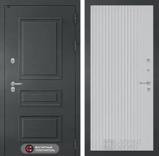 Сталь 1,5 мм, закрытый утепленный короб, усиливающие 2 ребра жесткости (вертикальные П-образные)