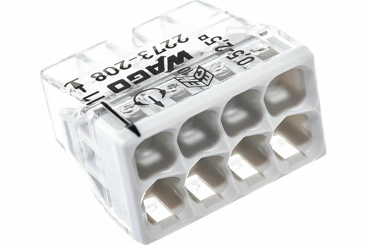 Клемма WAGO используется для соединения проводов с одной или несколькими жилами, а также разных сечений. У этого способа скрепления есть ряд преимуществ: высокая скорость соединения, надежность и удобство дальнейшей работы с проводами, их обслуживания.Проводящая часть соединителя изготовлена из меди.