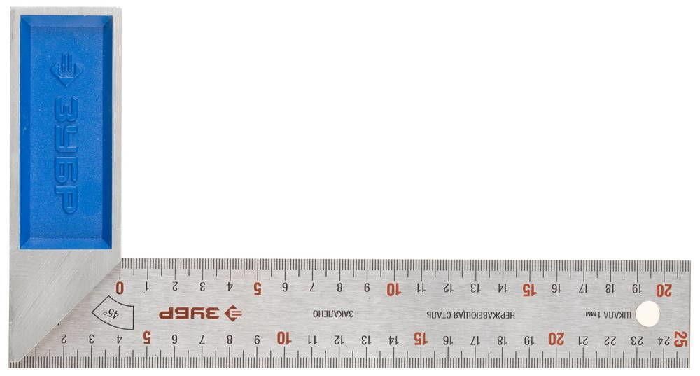 Угольник ЗУБР "ЭКСПЕРТ" столярный, гравированная шкала, алюминиевая рукоятка, нержавеющее полотно 37мм, 250мм (1шт.)