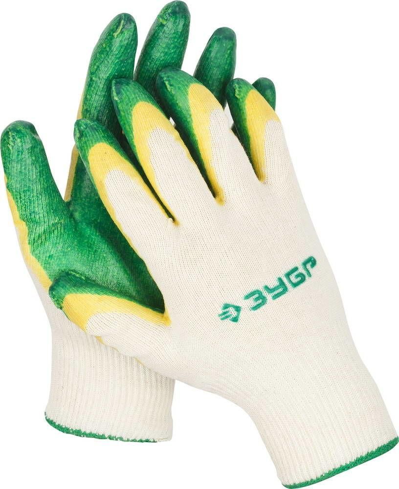 Перчатки ЗУБР "МАСТЕР" трикотажные, х/б, двойная обливная ладонь из латекса, L-XL