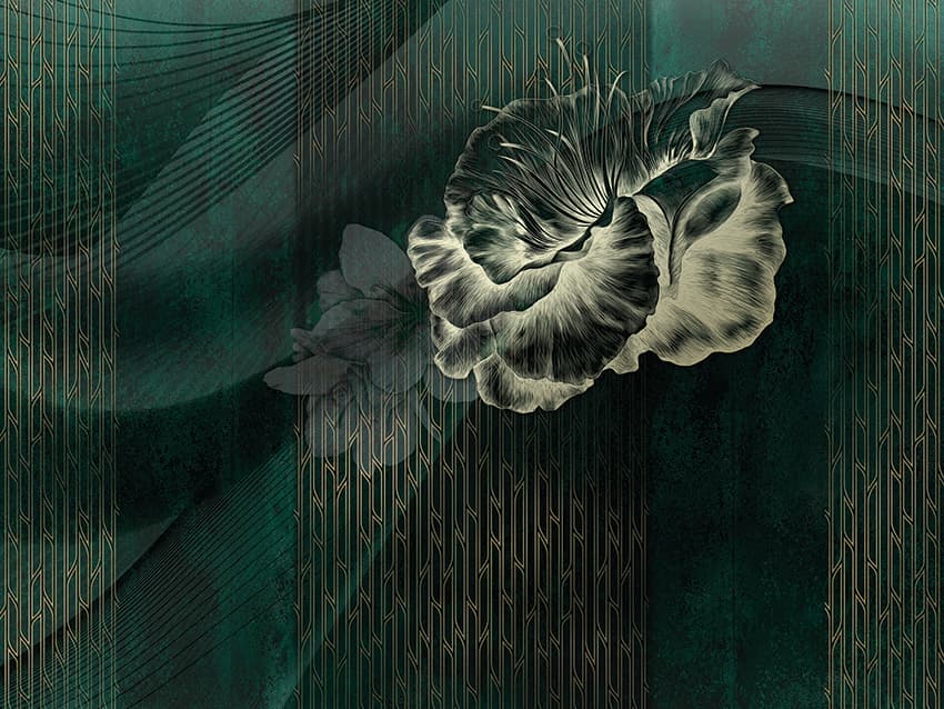 Фреска 3Д цветок на темно-зеленом фоне