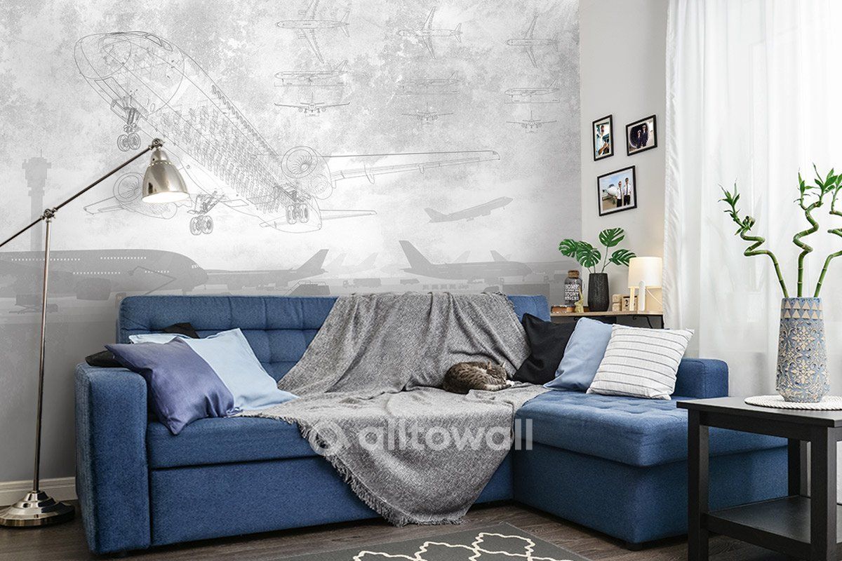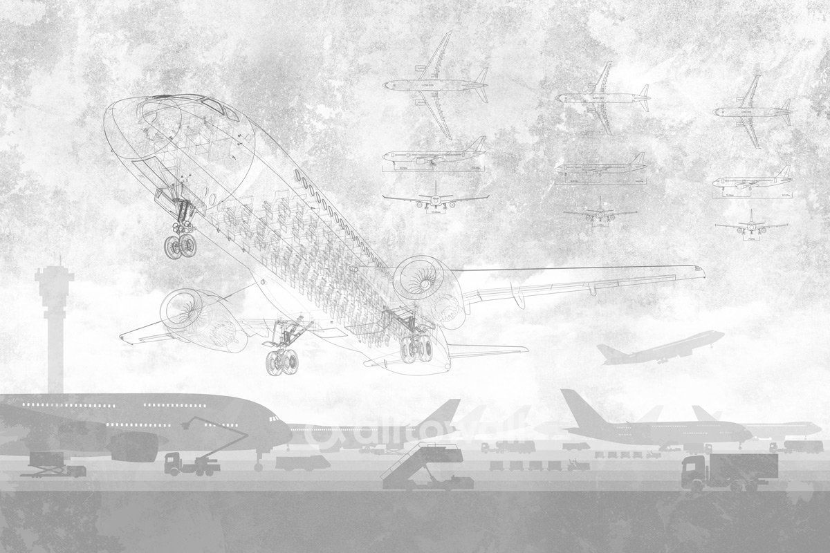 Минималистичные обои с аэропортом для комнаты подростка, рабочего кабинета или гостиной. «Аэропорт-1» — стильный сюжет в светло-серых тонах для тех, кто не может жить без неба.
