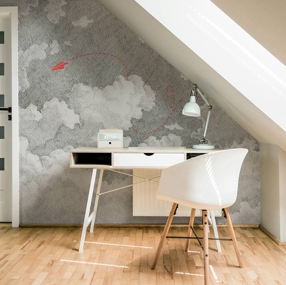 AIRPLANE — обои, которые превращают комнату в просторное небо, полное движения, легкости и мечты. Эта модель создана для того, чтобы дарить ощущение полёта — бескрайние небесные просторы, пушистые облака, и самолет, который смело мчится вперёд, оставляя за собой пунктирный след, словно маршрут мечты. Графичный стиль рисунка придаёт композиции лёгкость и лаконичность, а линия полета самолета буквально «двигает» взгляд по стене, создавая динамику и ощущение направления. Такой подход особенно хорошо работает в интерьерах детских комнат, игровых зон или даже творческих студий — там, где важны свобода, воображение и чувство перспективы.
