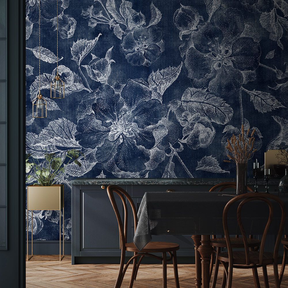 APPLE FLOWERS – обои, для дизайна которых используется необычная техника рисунка «пуантэль». Такое изображение собирается из мельчайших точек, которые складываются в единую картину.