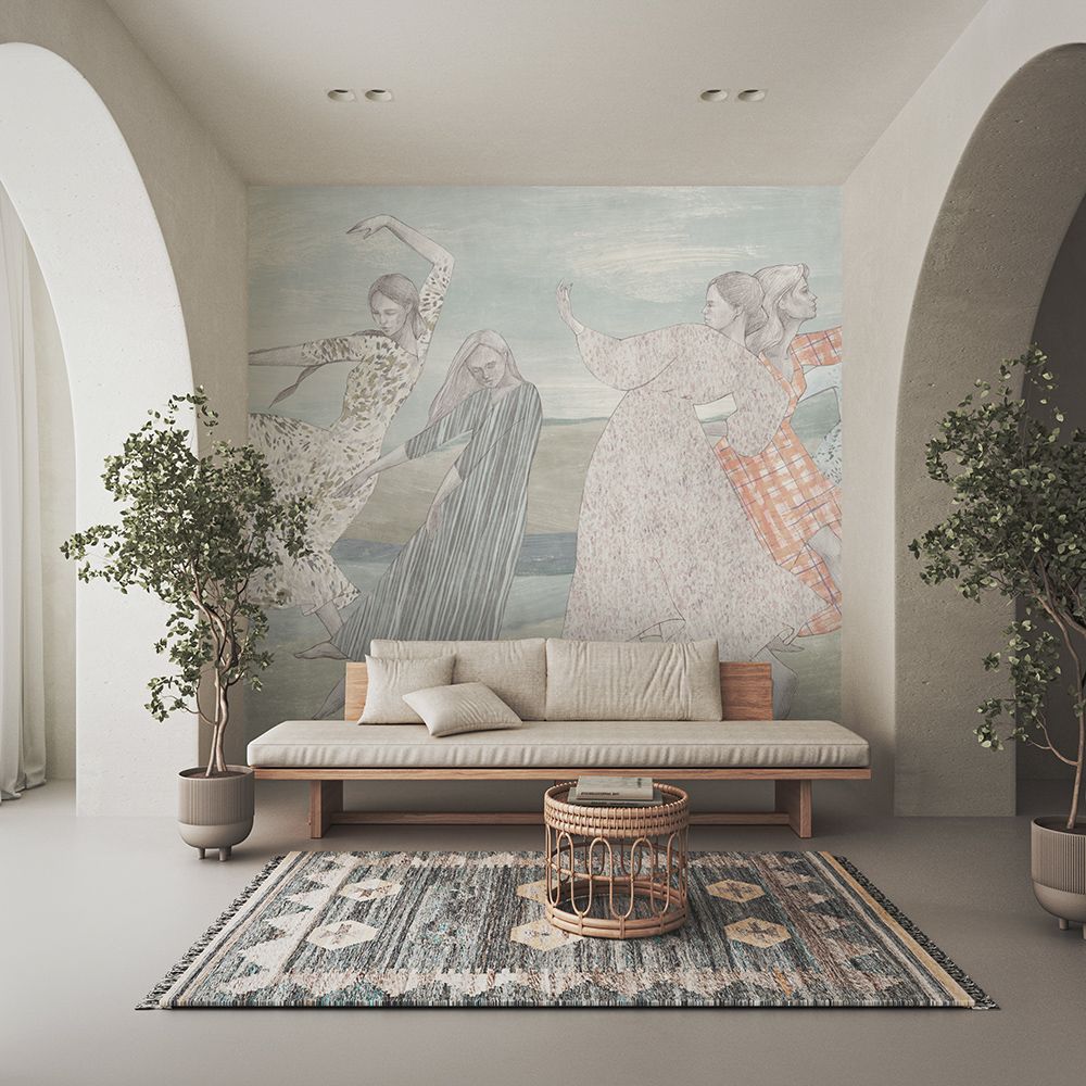 В основе композиции — реальные танцевальные движения, запечатлённые на видео. Именно они задали ритм и пластику будущего орнамента. Первоначальный вариант был ярче, динамичнее, с акцентом на академичность. Но постепенно образ трансформировался, обретая мягкость и медитативность.