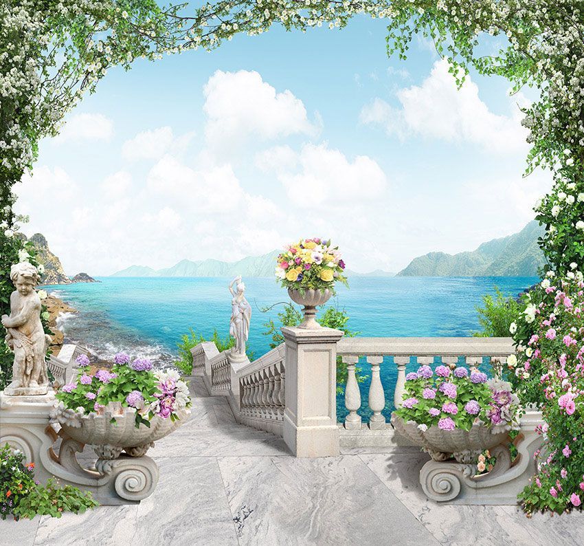 Фреска Белая мраморная лестница с вазонами