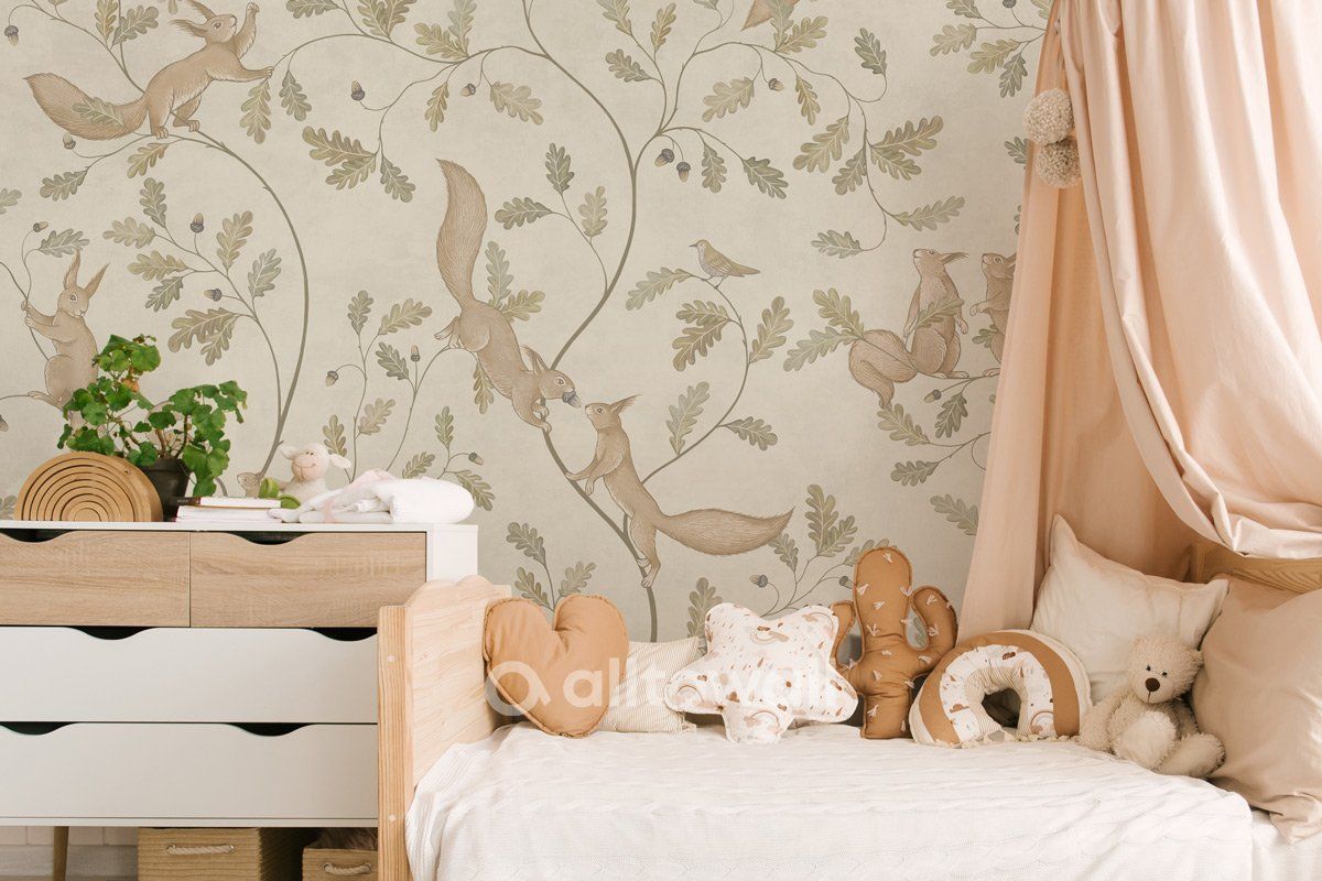Погрузитесь в атмосферу русской сказки с новым лесным сюжетом. Здесь пушистые белочки ловко прыгают по дубовым веткам, готовят запасы на зиму и весело играют друг с другом. Нежные и живописные обои гармонично впишутся в интерьер детской и станут идеальным фоном для игр и отдыха.