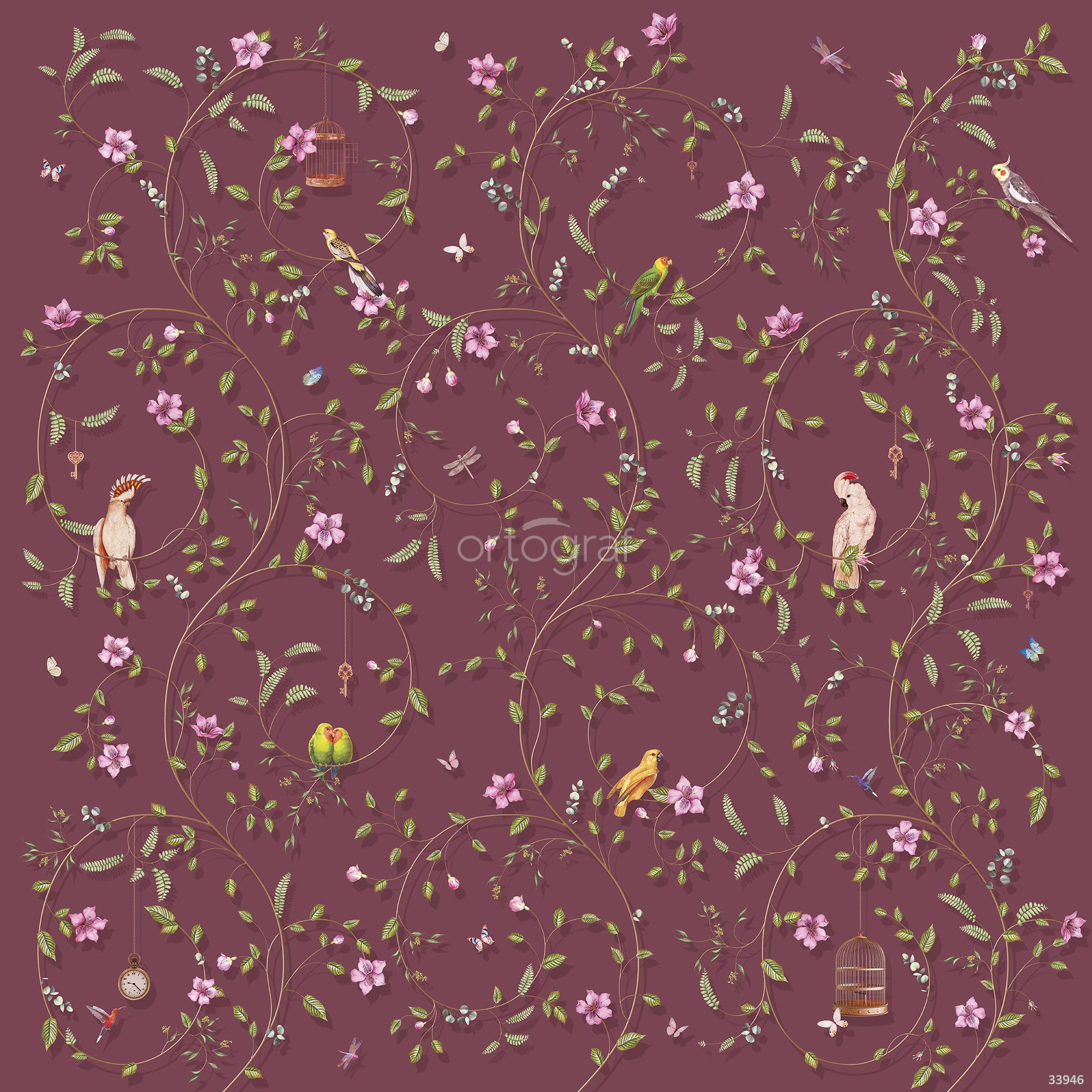Замысловатый орнамент из витых ветвей с цветами, экзотическими попугаями, клетками, ключами и часами создает необычное и сказочное настроение. Такой сюжет наполняет интерьер ощущением уюта, фантазии и лёгкости, способствует творчеству и расслаблению. Особенно хорошо подойдет для оформления детской, кухни, столовой или гостиной, делая атмосферу живой и вдохновляющей.