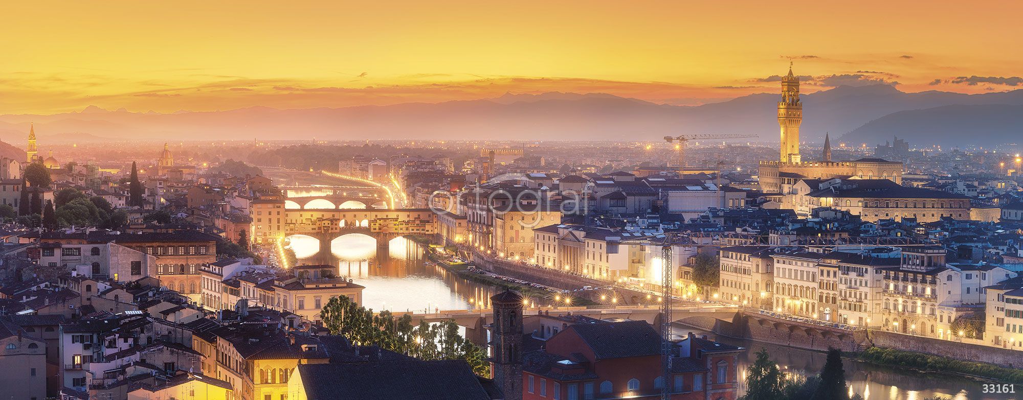 На картине изображён городской пейзаж с историческим мостом, рекой и архитектурными памятниками на фоне гор и заката. Сюжет идеально подходит для интерьера, где хочется создать атмосферу европейского уюта, вдохновения и динамики большого города. Особенно хорошо будет смотреться там, где ценятся виды на архитектуру и панорамы города.