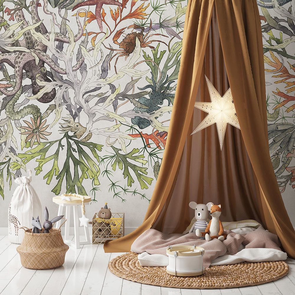 FONDO MARINO – стильные обои, рисунок которых посвящен морской жизни и таинственным глубинам. Использование акварельной техники и ярких красок позволило нашей художнице Кате создать волшебный мир и передать сложные переливы и глубину, присущие океанским просторам. Модель FONDO MARINO примечательна именно этими мягкими градиентами, которые благодаря мастерству нашей художницы сплетаются в изящный и витиеватый орнамент. Подводный мир предстает перед нами удивительным и бесконечно прекрасным, наполненным тайнами и гармонией. Кстати, градиенты и насыщенные сложные цвета — это тренд последних лет, который придаёт интерьеру актуальность и выразительность. Наша модель идеально подойдёт для детских и подростковых комнат, создавая атмосферу мечтаний и вдохновения, но мы вполне представляем её и в других пространствах, таких как гостиная. Не ограничивайте себя в желаниях — дайте волю фантазии!
