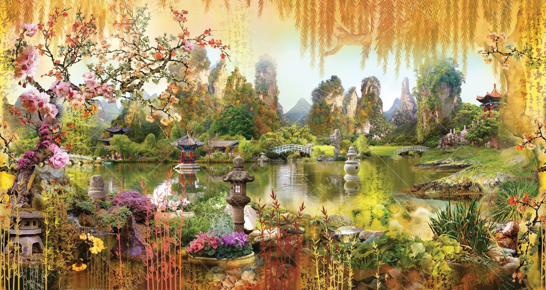 Фреска Фотообои-панно японский сад