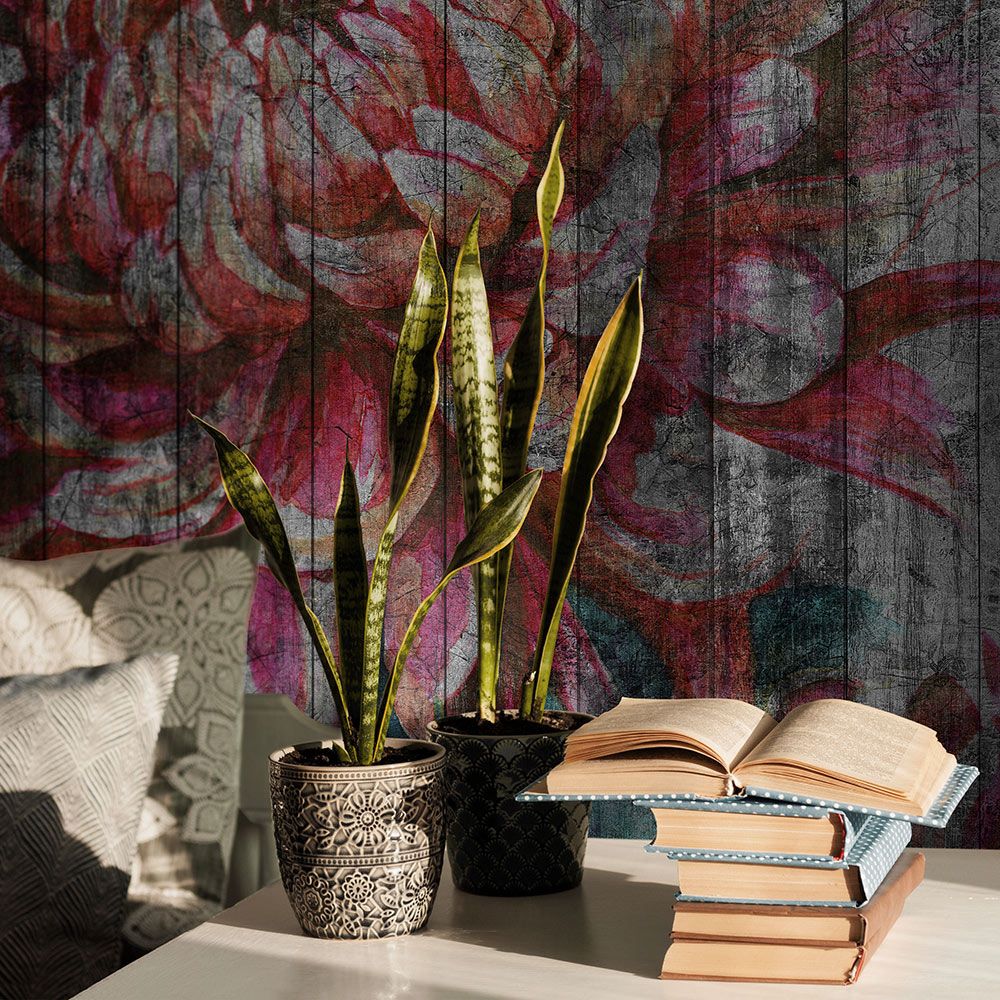 IMAGINARIUM – необычный вариант дизайнерских покрытий, которые станут находкой для интерьера в стиле кантри, Прованс или этника. Основной фон имитирует грубую, неокрашенную поверхность деревянной доски, на которой проступают тонкие, изящные контуры цветочных бутонов. Кажется, что цветы прорастают через древесину, набирают силу и распространяют вокруг чарующий, нежный аромат. Обои предлагаются в нескольких вариантах расцветок – от светлых до насыщенных темных.