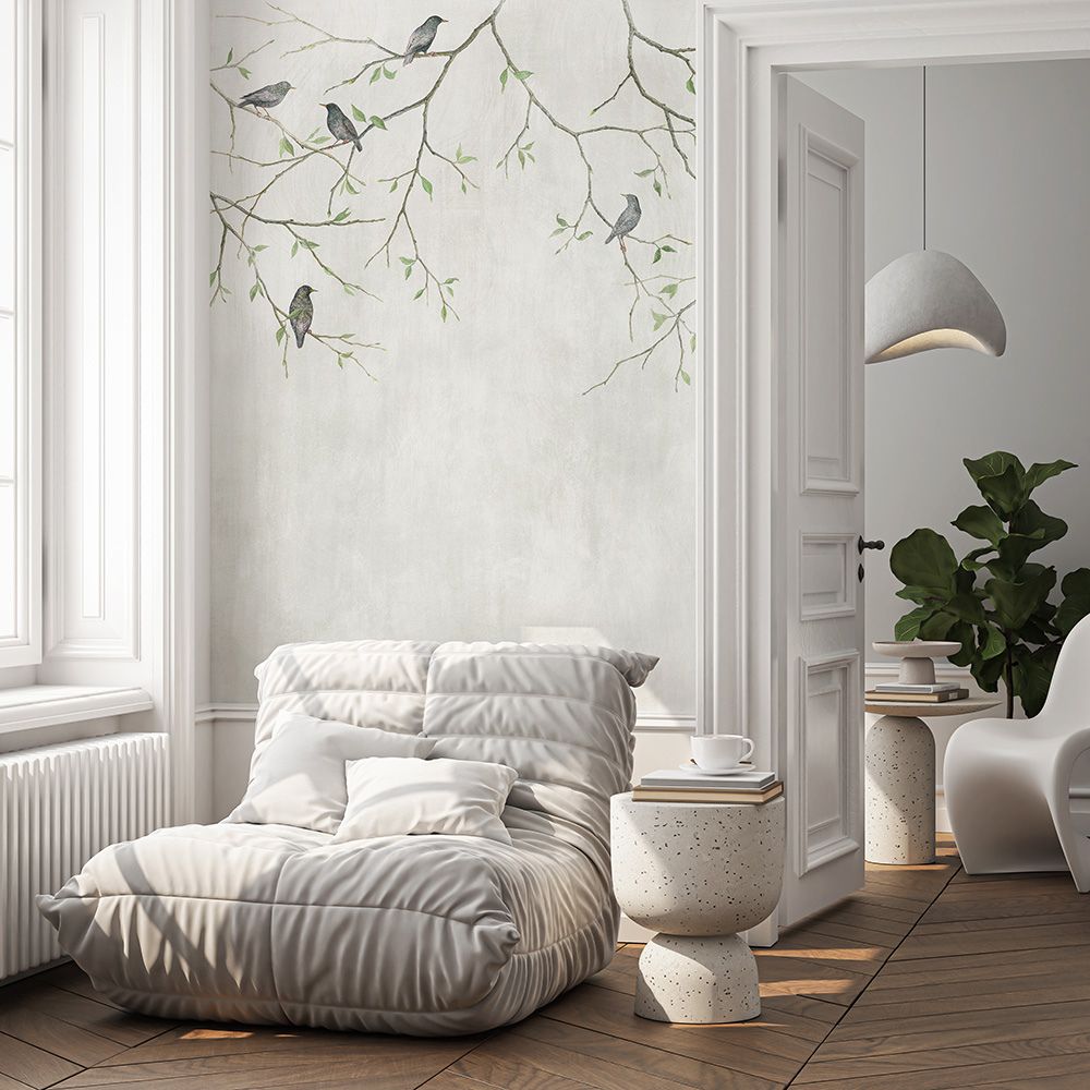 Почему мы назвали нашу новинку «Вдох»? Нам было важно уловить именно тот короткий миг пробуждения природы – несколько драгоценных дней, когда свет и тепло незримо переплетаются, чтобы подарить жизнь первой листве. Нашу художницу мы в шутку зовём «орнитологом» за её неизменную любовь к птицам, но каждый раз Катя открывает эту тему по-новому. На полотне – акварельные переливы оперения скворцов и едва проступившая молодая зелень. Мы тщательно дорабатывали цветовые вариации, стремясь не нарушить хрупкую гармонию, где каждая полутона важна. «Вдох» – это не просто мотив весны, это ощущение лёгкости, которое хочется сохранить в интерьере надолго.