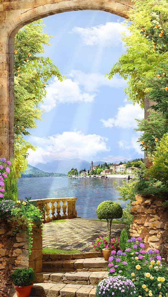 Фреска Каменная арка с апельсинами
