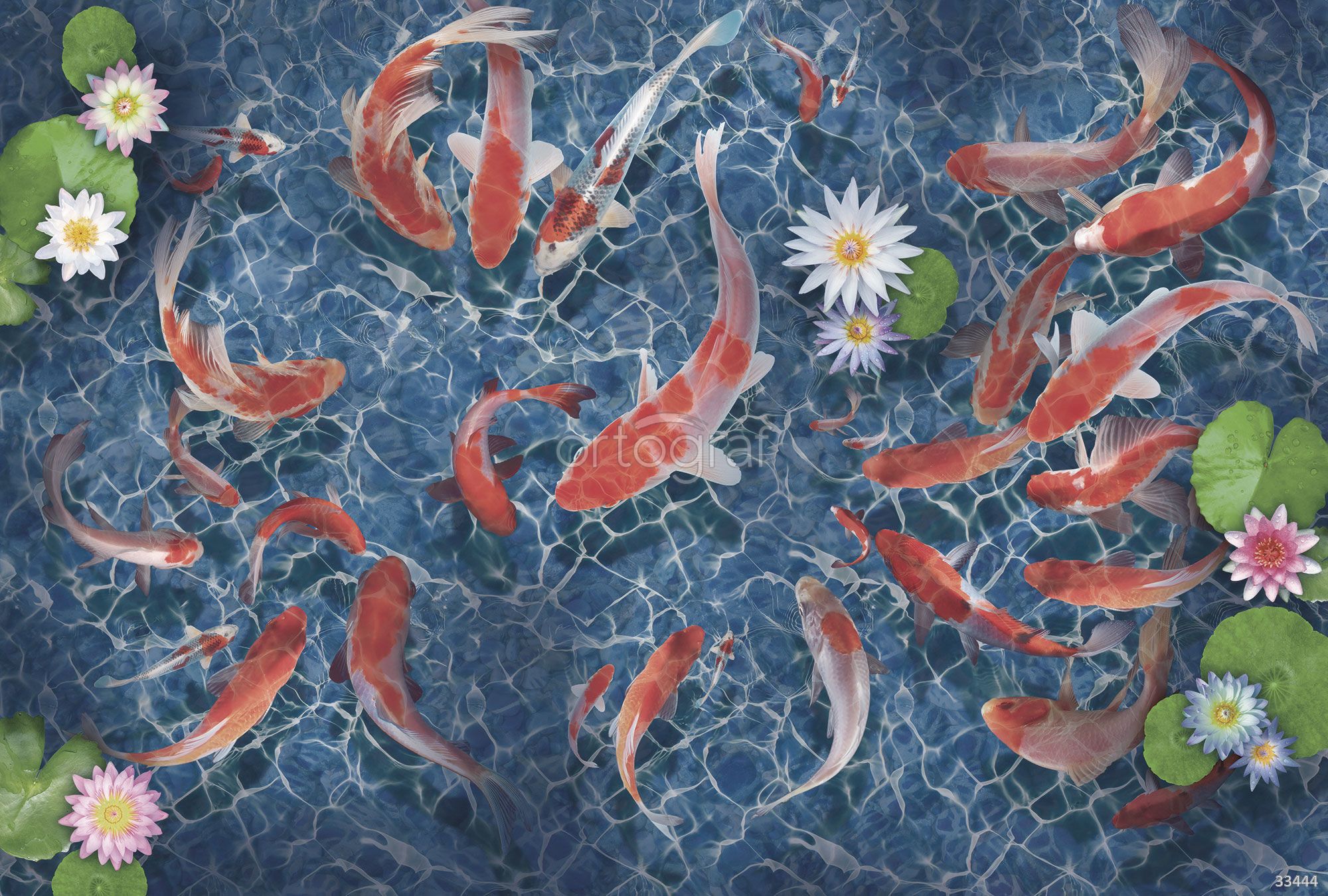 Нежная композиция с карпами кои, плавающими среди водных лилий на прозрачной воде, создает атмосферу спокойствия и гармонии. Такой сюжет отлично передает эффект природного водоема, добавляя интерьеру ощущение свежести и расслабленности. Идеален для помещений, где необходим отдых и умиротворение, а также для интерьеров в восточном стиле.
