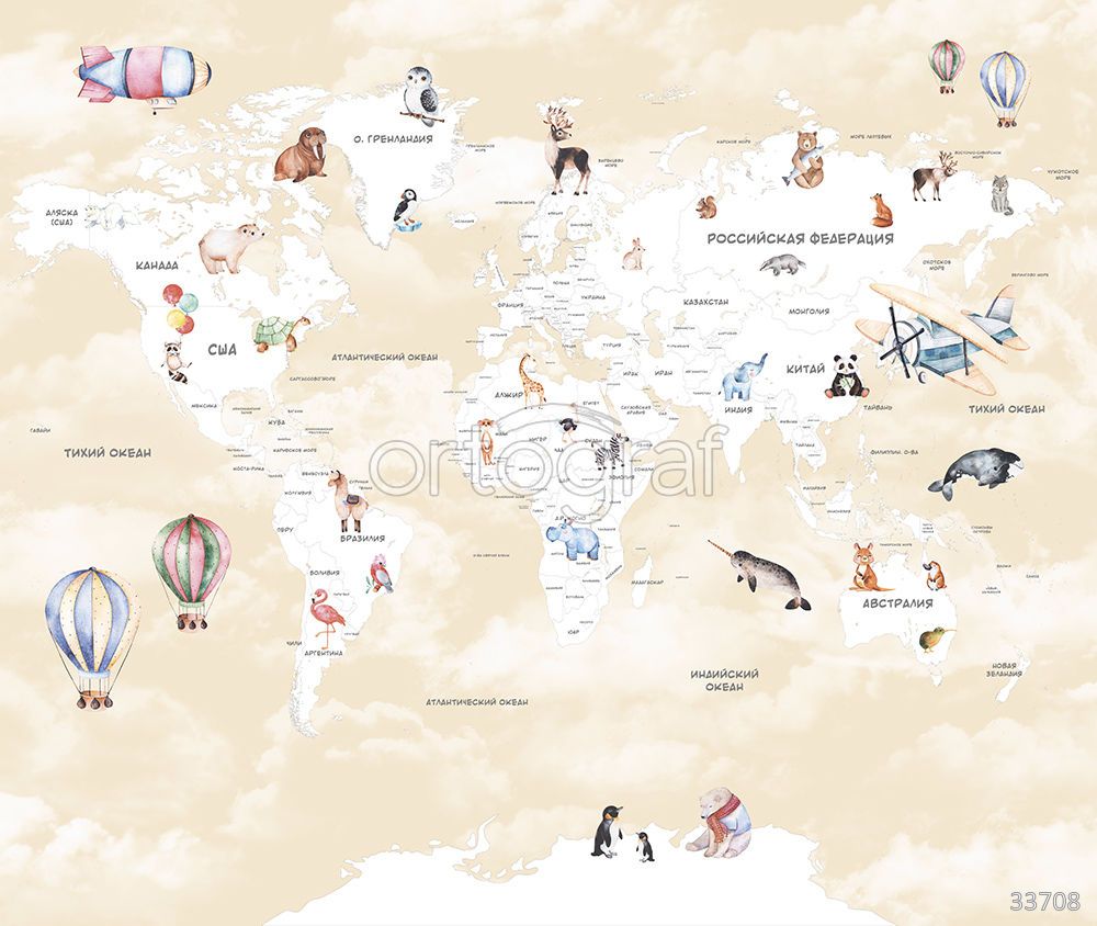 Детская карта мира с животными, самолетами и воздушными шарами на розовом фоне делает изучение географии увлекательным и ярким. Такой сюжет помогает расширять кругозор, развивает интерес к миру и отлично подходит для оформления интерьера игровой или детской комнаты. Карта станет не только украшением, но и образовательным элементом для малышей.