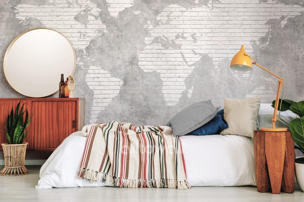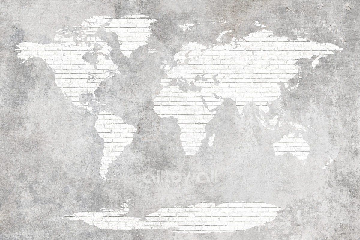 Светлый сюжет в индустриальном стиле с очертаниями континентов. «Кирпичная карта мира-2» — стильные обои, имитирующие кирпичную кладку и бетонную стену, для вашей спальни или гостиной.