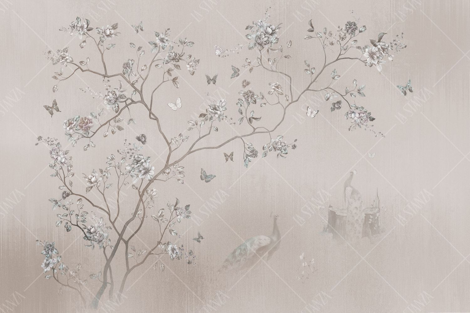Фреска Китайское панно Шинуазри с двумя павлинами