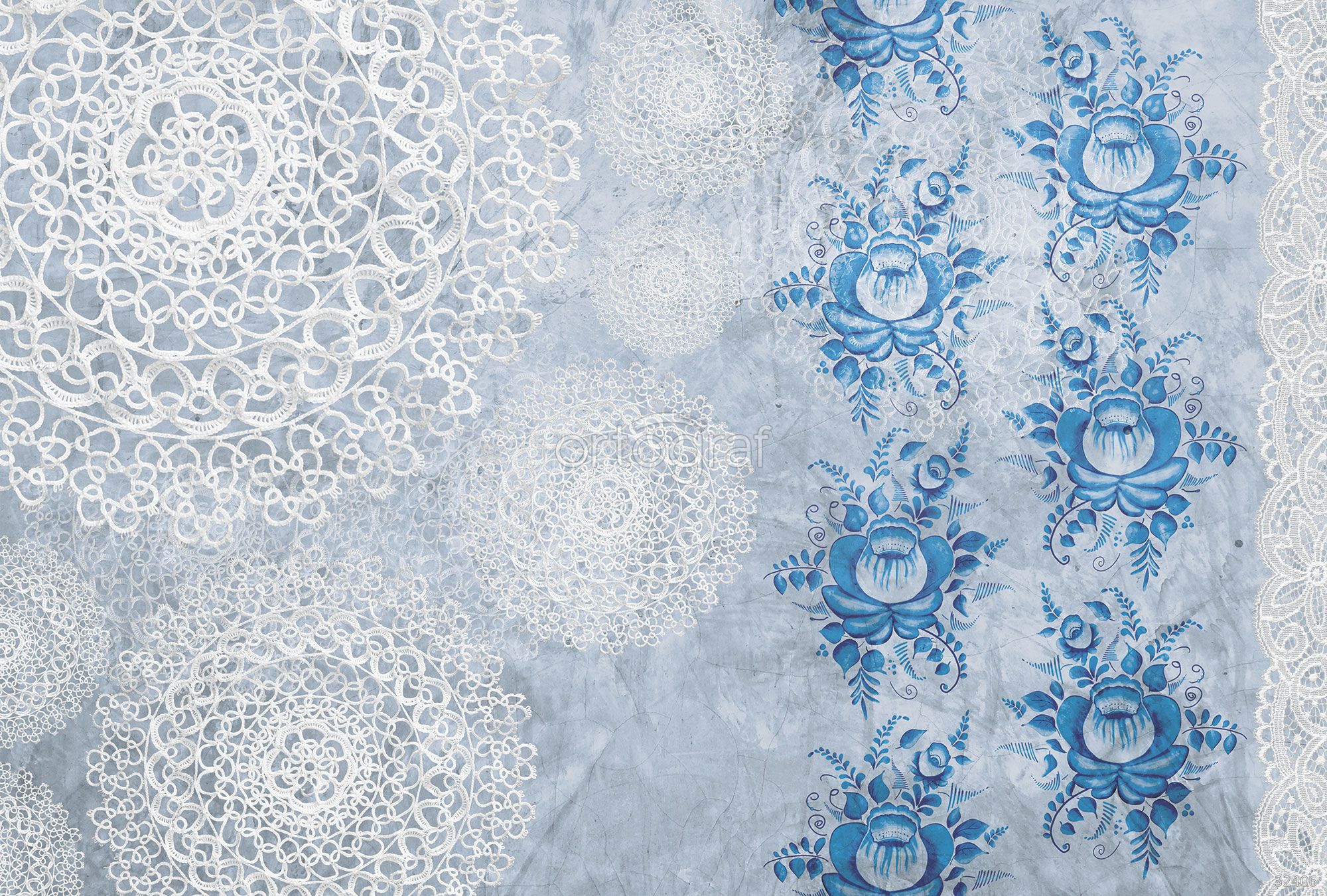На изображении изящные ажурные кружевные узоры на фоне фактурной поверхности, создающие ощущение легкости и элегантности. Такой мотив помогает наполнить интерьер изысканным декоративным акцентом, внести в обстановку нотку уюта и стиля.