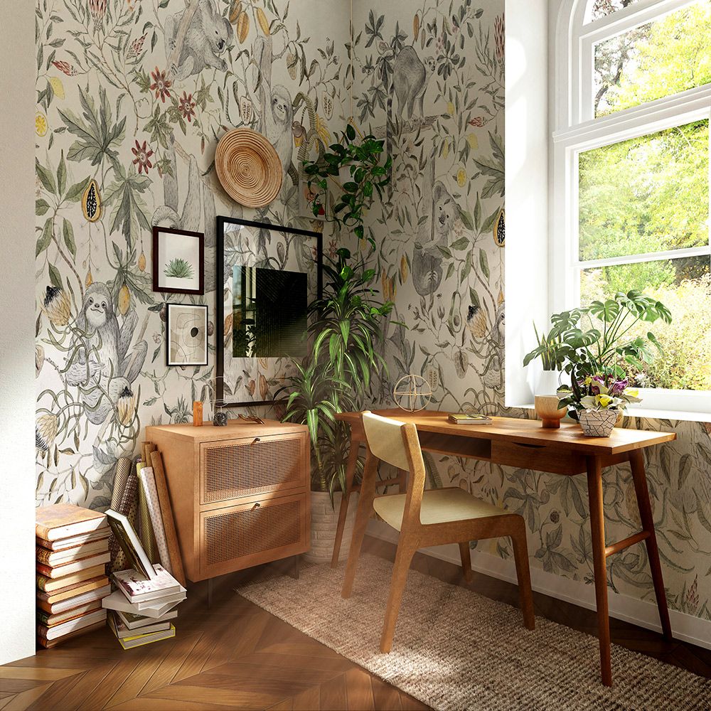 LEMURIA – обои, дизайн которых посвящен сказочному лесу, где на ветвях деревьев можно увидеть коал и лемуров. Спокойное и располагающее к отдыху изображение станет отличным решением для комнаты ребенка, стильной спальни или гостиной. При оформлении можно использовать несколько вариантов расцветок, модели обоев с насыщенными красками или в естественных тонах.