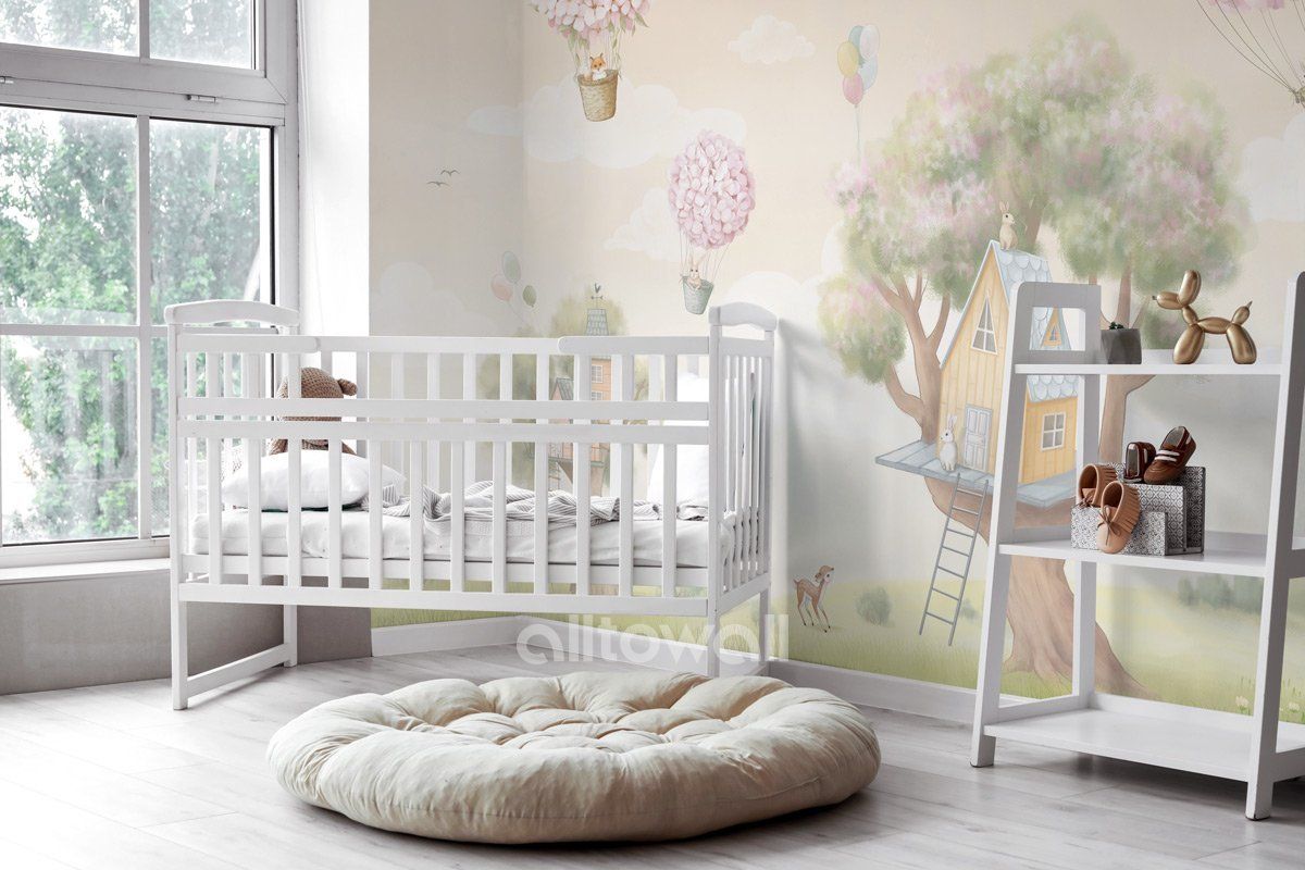 Летний день – сюжет для детских комнат, посвящённый сказочной сцене из жизни леса. Умиротворяющая картина изображает небольшой уютный дом на дереве, семейку зайчат, лисичек и кроликов. Особая техника рисунка напоминает контуры, нанесённые пастельными мелками.