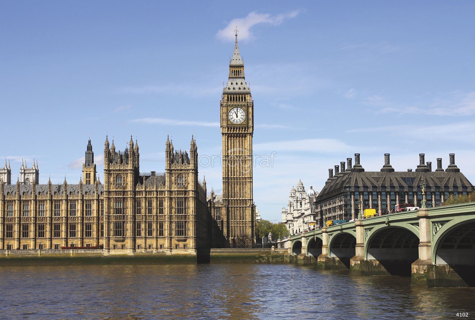 Изображение знаменитой башни с часами и британского дворца у реки с мостом передаёт атмосферу европейского города и формирует ощущение строгой архитектуры и исторической значимости. Такой сюжет отлично подходит для помещений, где хочется подчеркнуть изысканность, стиль или деловую атмосферу. Идеально для офисных пространств, гостиных или холлов.