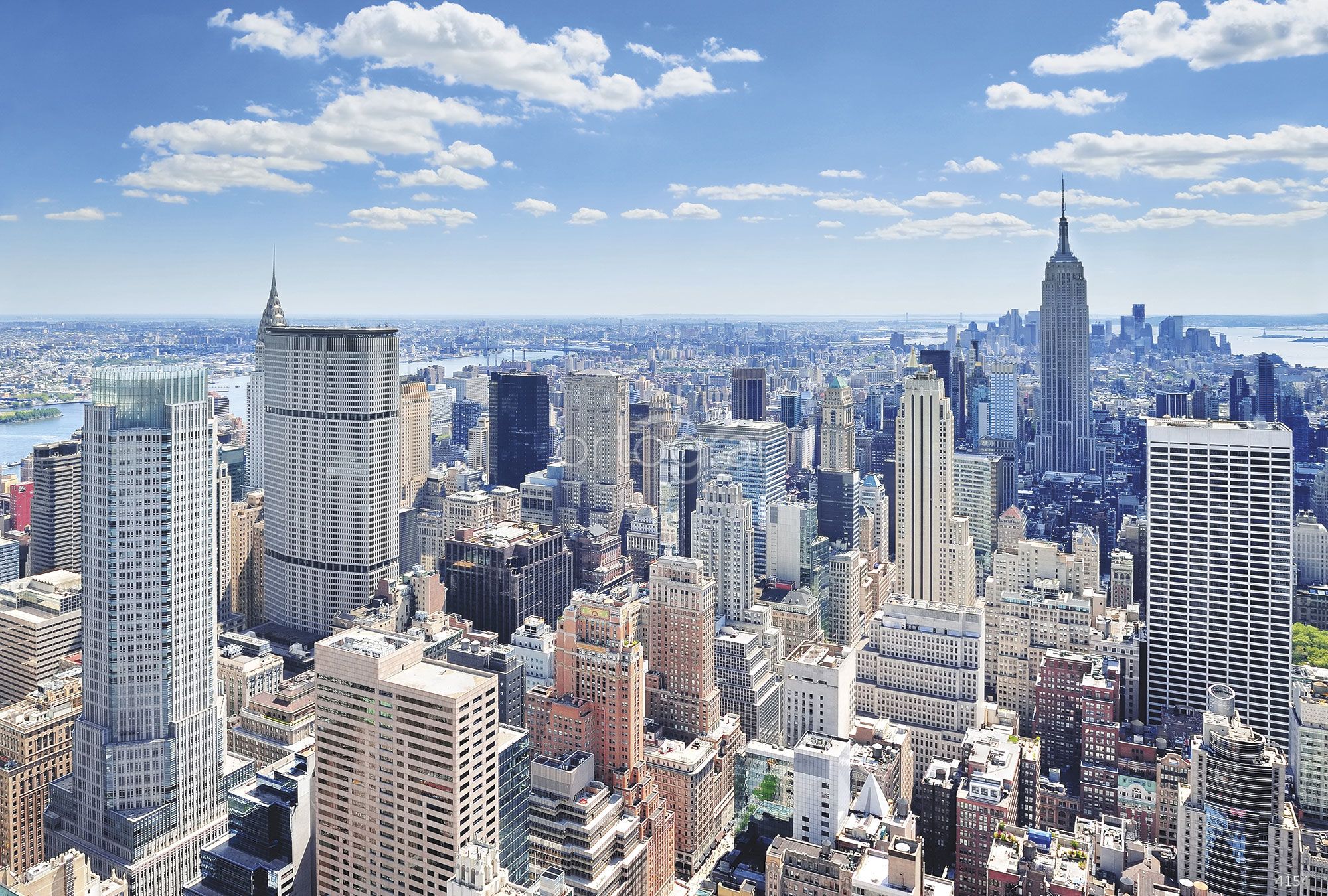 Панорамный вид на деловой центр мегаполиса с высоты, где много различных современных небоскрёбов и офисных зданий, создаёт атмосферу динамики и современного ритма жизни. Такой сюжет отлично дополняет интерьеры в урбанистическом и современном стиле, визуально расширяет пространство и придаёт помещению деловую энергетику. Особенно хорошо подходит для рабочих пространств и зон встреч.