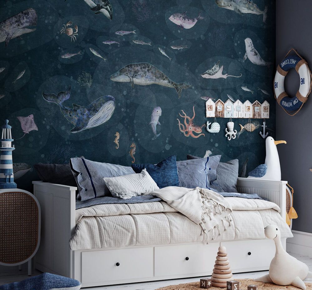 MARINE LIFE – дизайнерские покрытия, которые словно предлагают окунуться в неведомый мир океана. Модель посвящена величественным китам, которые всю свою жизнь рассекают воды океана. Чарующая красота и тайна глубин моря никого не оставит равнодушным. При взгляде на рисунок кажется, что киты сейчас выпрыгнут и брызги соленой воды попадут на руки. Для изготовления обоев используется мягкая, тонкая текстура, которая создает гармонию и уют, делает линии немного размыты, словно видимыми через призму морской воды. В каталоге можно выбрать материалы в светлой расцветке или с темным фоном, напоминающим о глубоких слоях моря и таинственном дне. Преимущества покрытий: • использование экологически безопасных материалов; • устойчивость к механическим повреждениям, влажности; • плотная основа, маскирующая небольшие трещины, неровности; • соответствие требованиям пожарной безопасности. При заказе обоев можно отправить фото, по которому будет проведена цветокоррекция или масштабирование рисунка. Также можно выбрать фактуру, тип основы и наружного покрытия.