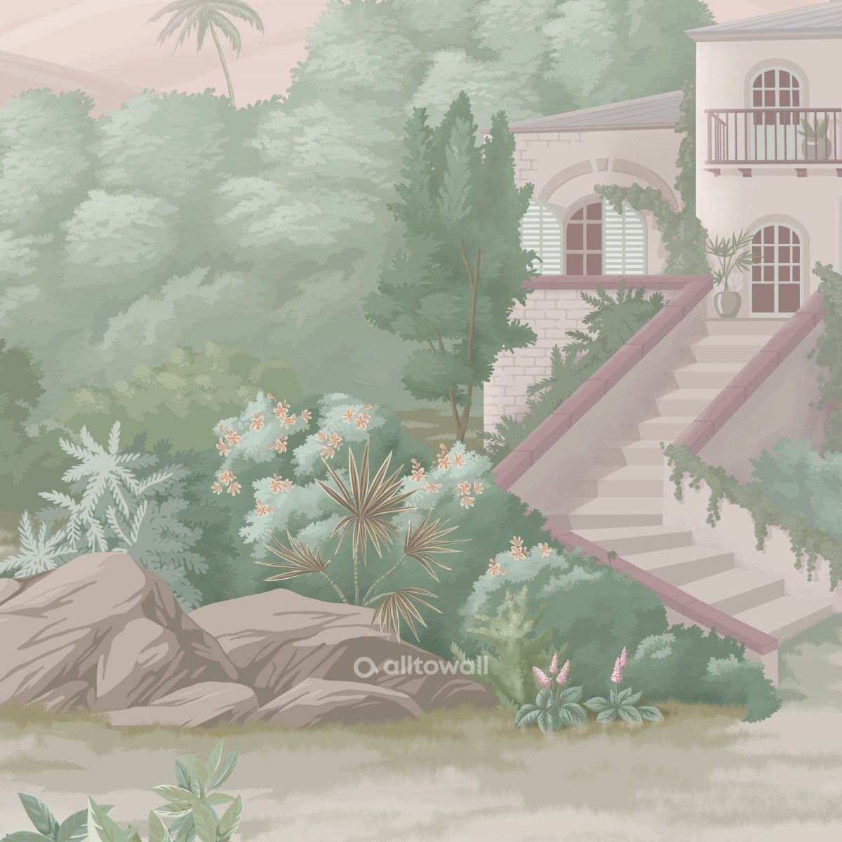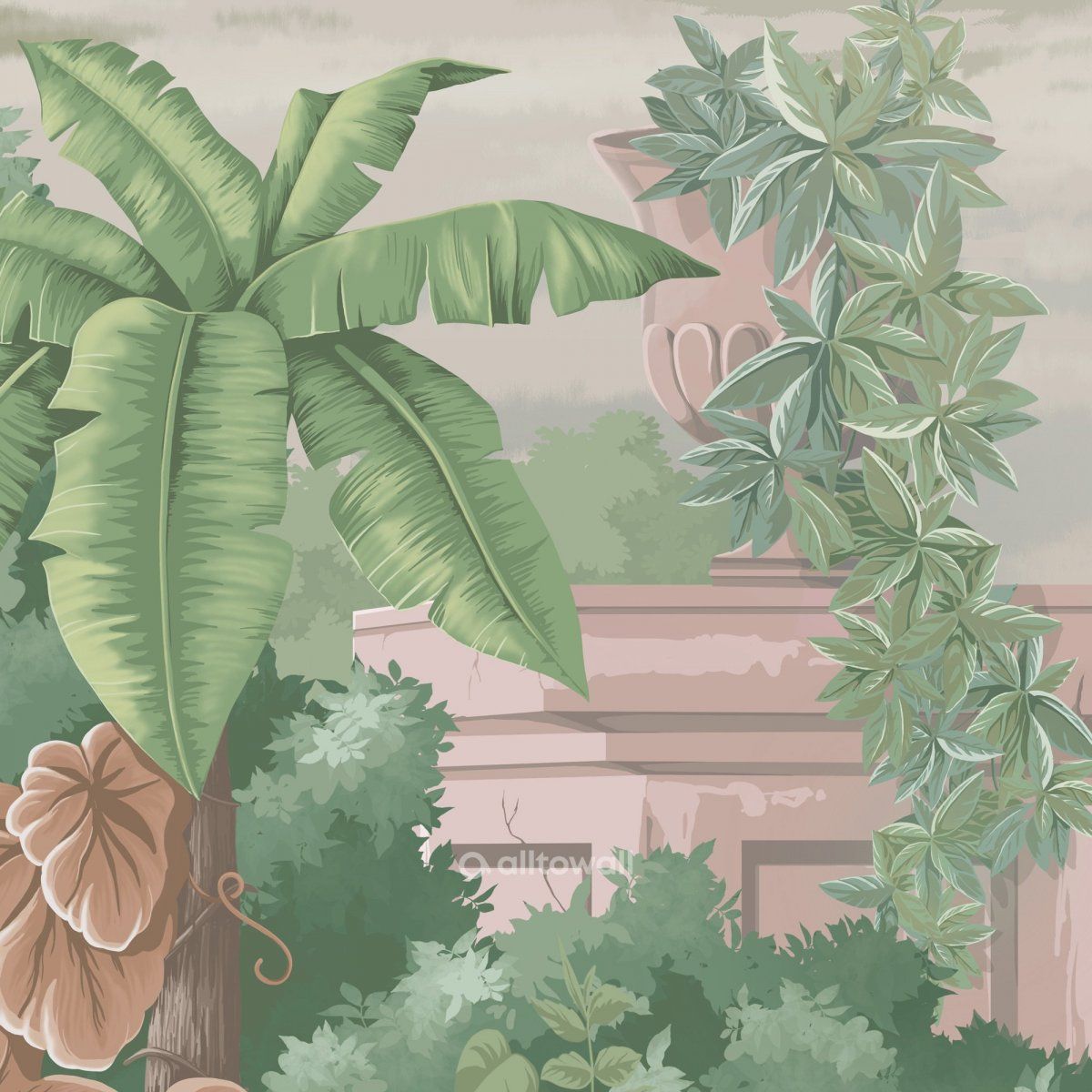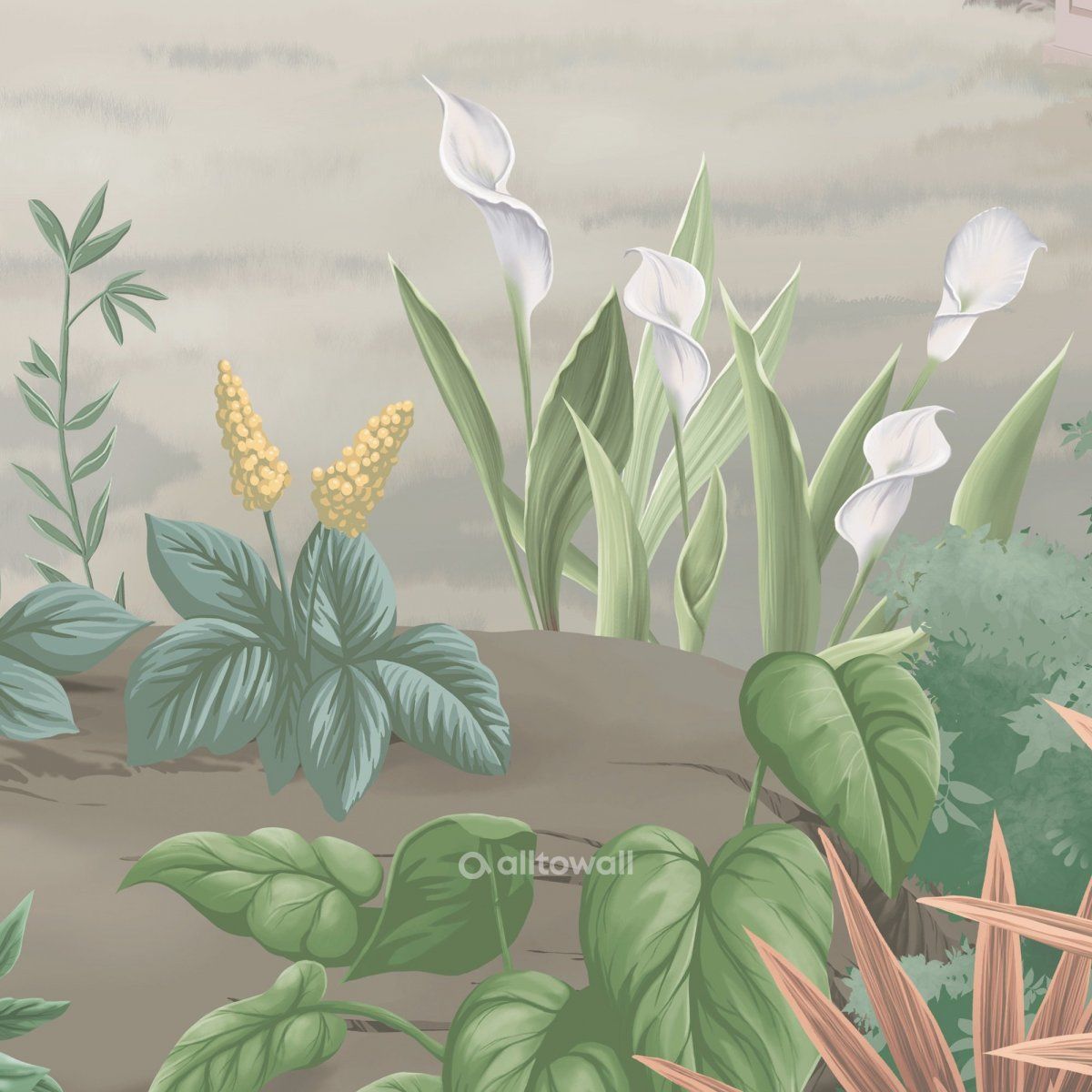 Мираж — прекрасное видение цветущего оазиса посреди пустыни, появляющееся перед путешественником. Здесь есть всё, что можно пожелать: прохладное озеро, горы в нежно-розовой дымке, тропические джунгли, дающие тень. Пейзаж дополняют грациозный леопард и озёрные цапли. Обои «Мираж» — универсальное решение и для гостиной, и для спальни, и для детской «на вырост»