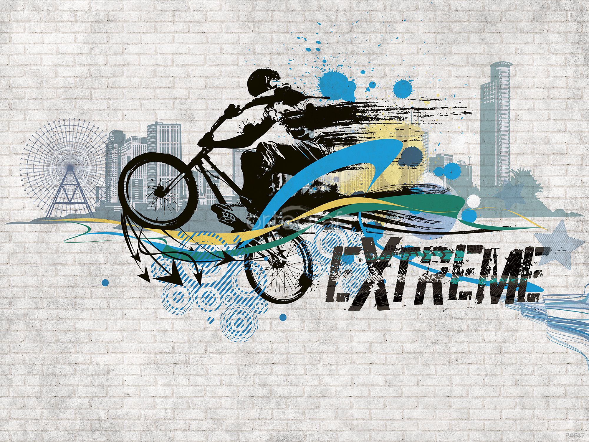 Граффити в стиле хип-хоп с изображением диджейских вертушек, колонок, магнитофона, наушников и энергичного танцора на фоне темной кирпичной стены. Атмосфера улицы, творчества и динамики отлично подойдет для создания яркого и креативного пространства. Такая композиция особенно уместна в детской, прихожей и коридоре или офисе.