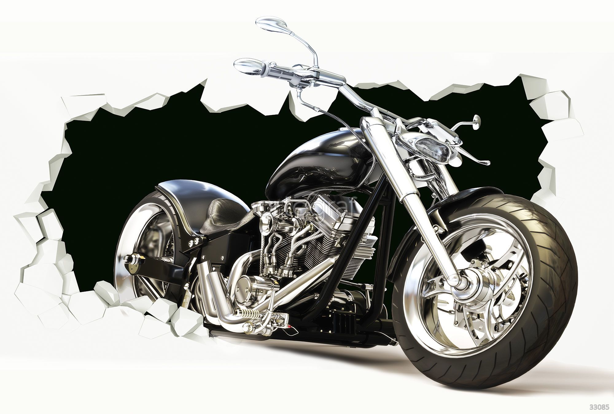 Символичный яркий образ мотоцикла, вырывающегося сквозь разломанную стену, ассоциируется со свободой, драйвом и стремлением к движению. Такой сюжет отлично подчеркнёт индивидуальность и характер помещения, добавит энергии и современного акцента.