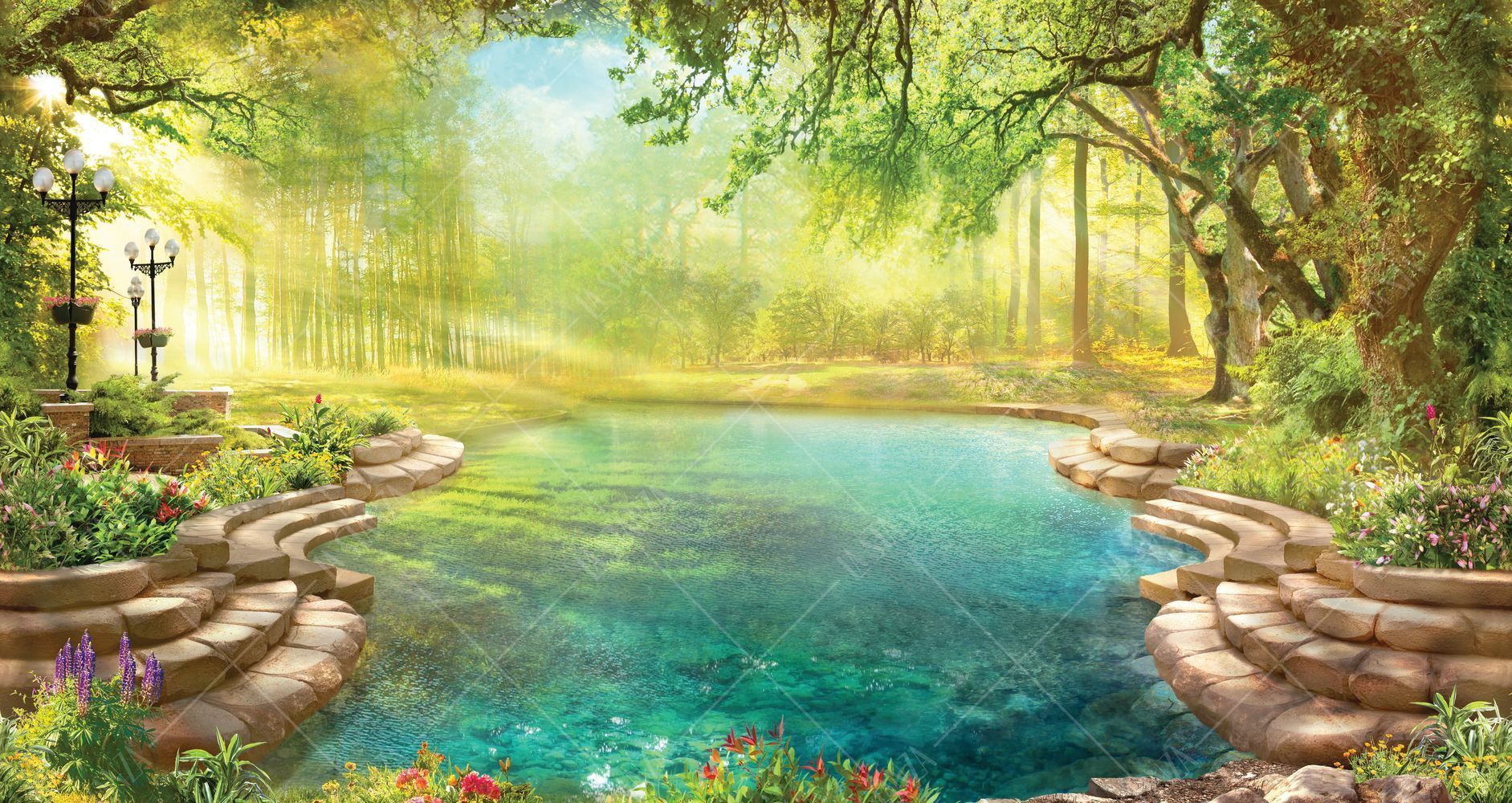 Фреска Натуральный природный бассейн, озеро