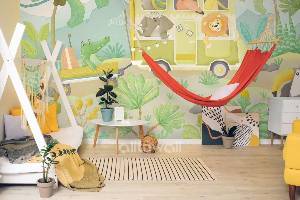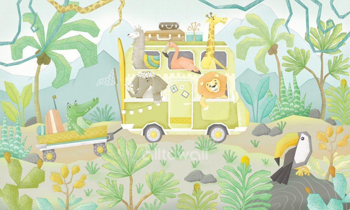 Однажды крокодил, слон, лев, жираф, лама и фламинго собрались в путешествие. Мы запечатлели эту увлекательную поездку! Серия детских обоев «Навстречу приключениям» состоит из трёх сюжетов. Они отличаются по цветам: светлые, насыщенные теплые или холодные оттенки? Просто выбирайте тот, что подходит для вашей детской.