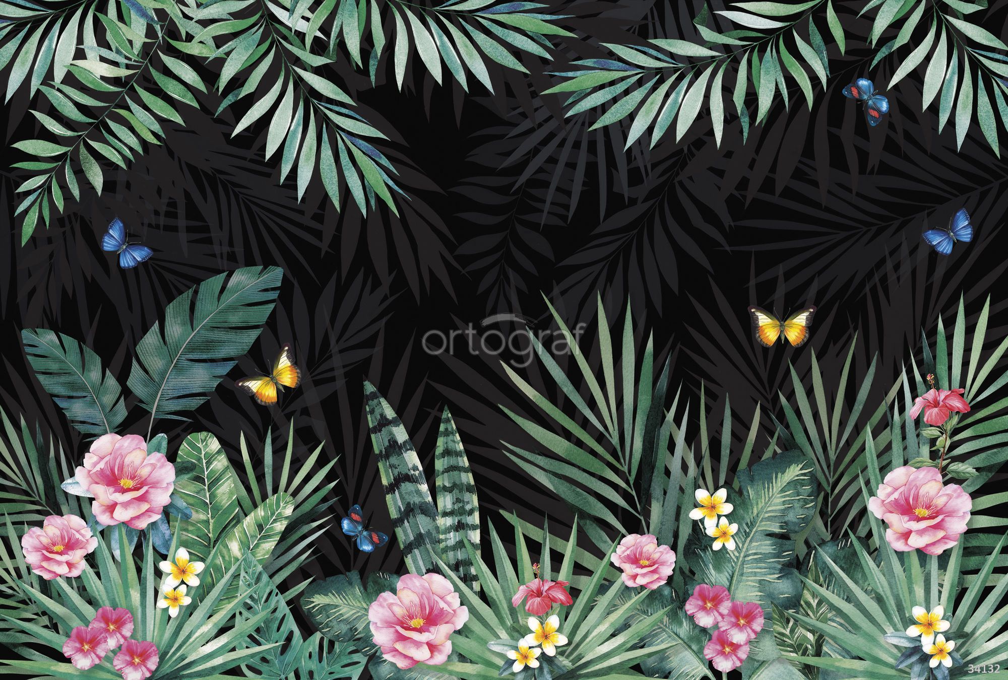 Тропические листья и крупные экзотические цветы в сочетании с порхающими бабочками создают ощущение яркого живого уголка природы. Такой рисунок привнесёт атмосферу тропиков, динамичности и лёгкости в интерьер. Наилучшим образом подойдёт для оформления современных пространств, где хочется добавить акцентную, жизнерадостную деталь. Особенно гармонично будет смотреться в гостиной, столовой и прихожей и коридоре.