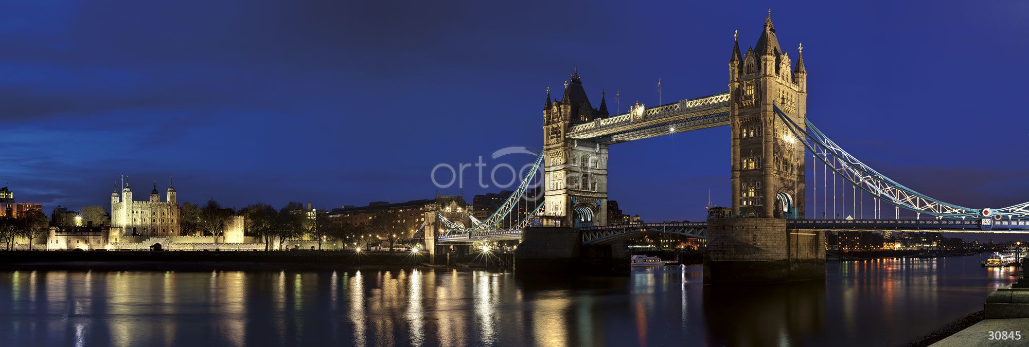 Знаменитый мост с башнями через реку, подсвеченный архитектурной иллюминацией, на фоне городской набережной — это Тауэрский мост в Лондоне. Такой сюжет передает атмосферу исторического города и отлично подходит для современных и классических интерьеров.