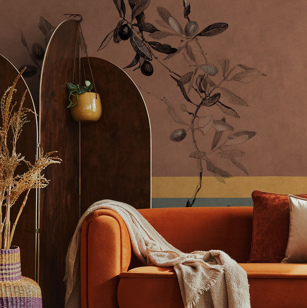 OLIVE – утонченная модель с основным сюжетом в виде тонких ветвей оливкового дерева, с которых свисают крупные зрелые плоды. Идеально подходит для спален и гостиных, создает ощущение покоя и гармонии, визуально расширяет пространство.
