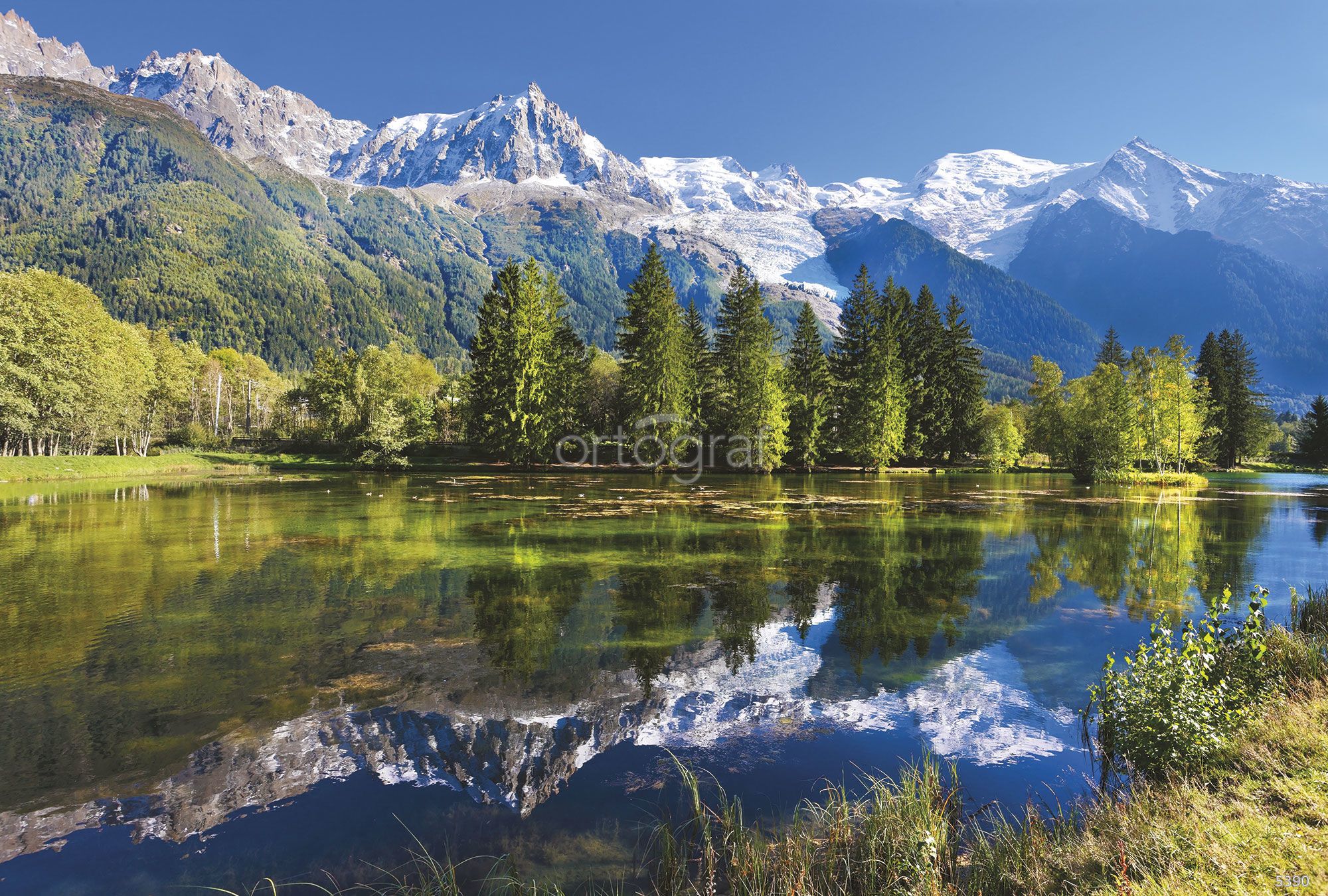 Горные вершины на фоне леса и спокойного озера создают впечатление уединённости и гармонии с природой. Такой сюжет отлично подойдёт для помещений, где важно ощущение простора и спокойствия, например в гостиной, спальне или офисе. Образ открытого природного пейзажа способствует релаксации и визуальному увеличению пространства. Особенно гармонично рисунок будет смотреться в современных или классических интерьерах.