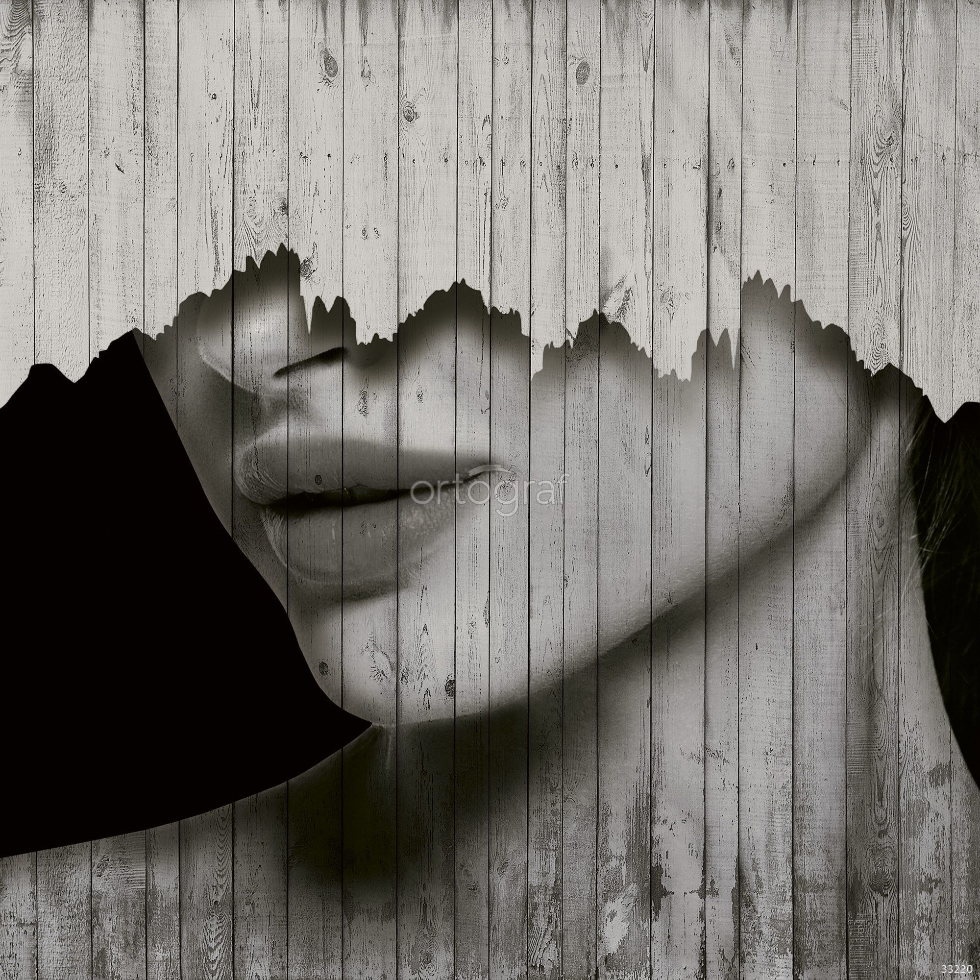 Необычная композиция с эффектом рваной поверхности на фоне деревянных досок создает загадочную и современную атмосферу. Графичный акцент и текстура дерева добавляют глубины, делая сюжет динамичным и интересным. Такая работа особенно хорошо смотрится в креативных интерьерах или минималистичных пространствах.