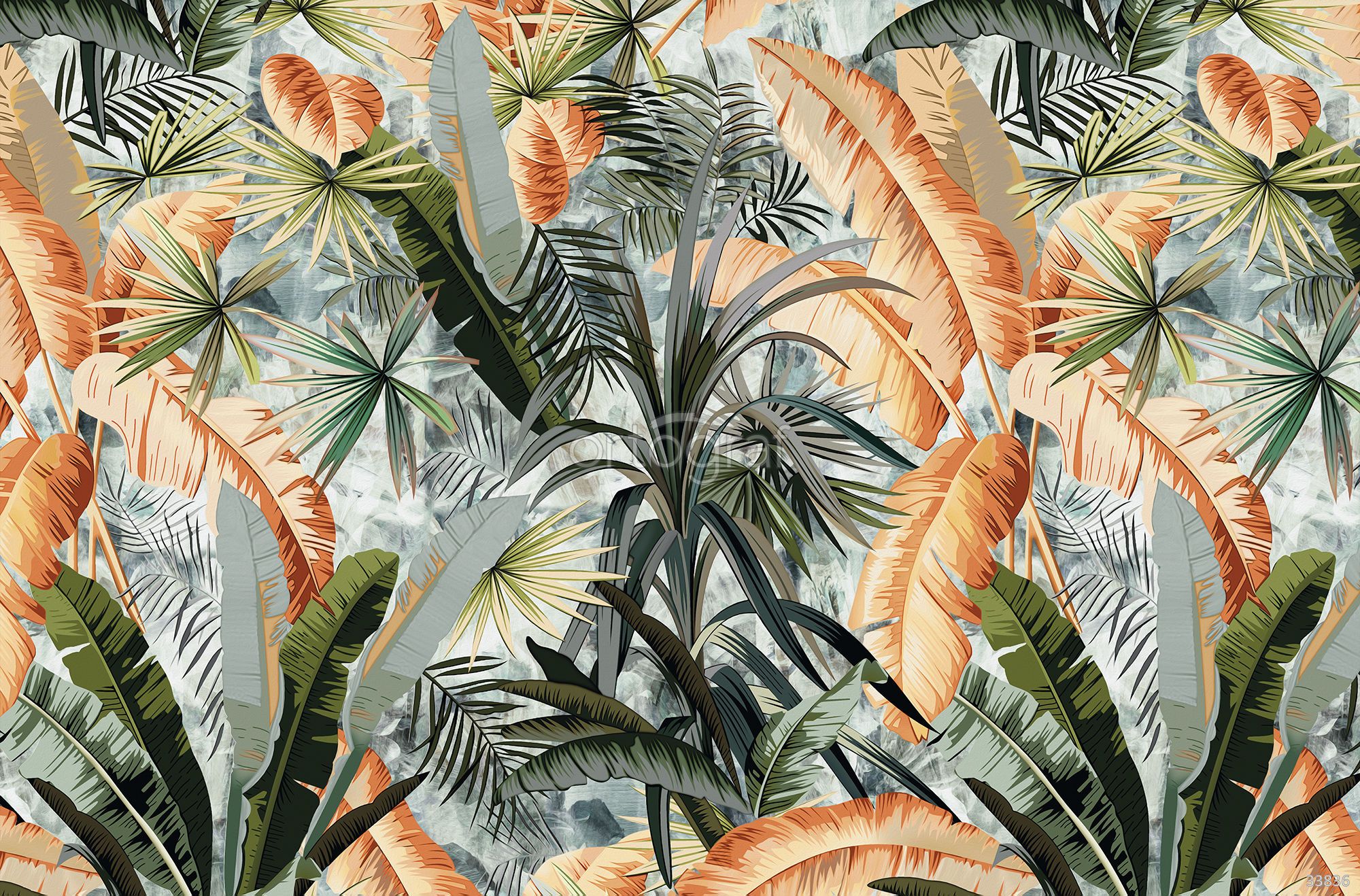 Яркий тропический узор с выразительными листьями и пальмами создает атмосферу экзотики и свежести, идеально подходит для современных и стильных интерьеров. Такой рисунок наполняет помещение бодростью и динамикой, делая его визуально насыщенным и живым пространством для отдыха и общения. Рекомендуется для гостиных, кухонь и прихожих — там, где хочется добавить летнее настроение и ощущение природы.