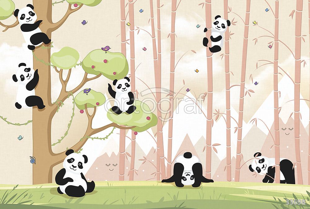 Забавные панды среди бамбука и деревьев создают атмосферу радости, тепла и игрового настроения. Такой сюжет отлично подойдет для оформления детской комнаты, наполняя пространство позитивом и побуждая к играм и фантазии. Рисунок станет яркой и уютной деталью в интерьере для самых маленьких.