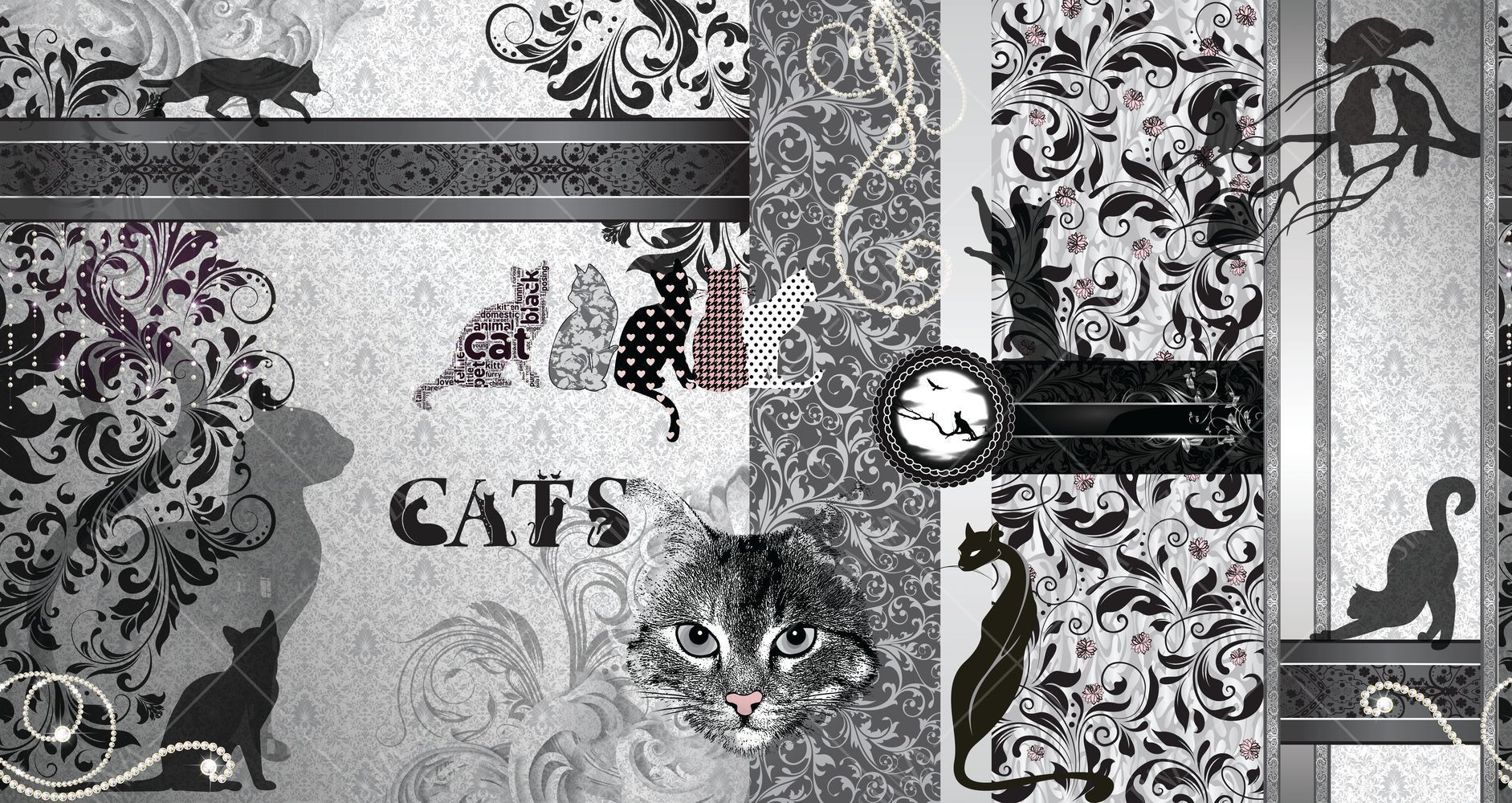 Фреска Панно черные кошки и орнамент