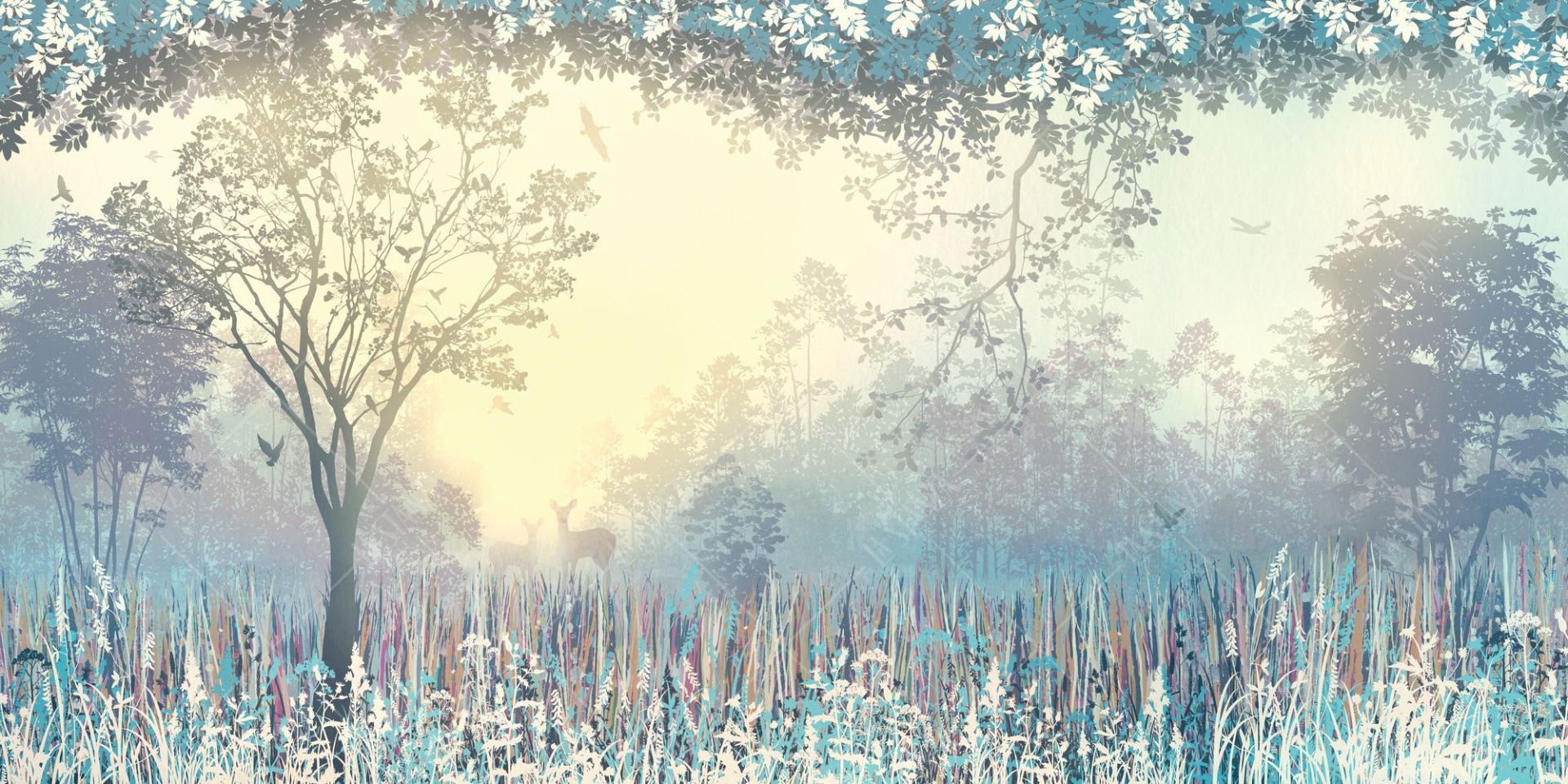 Фреска Панно лес в дымке и олени