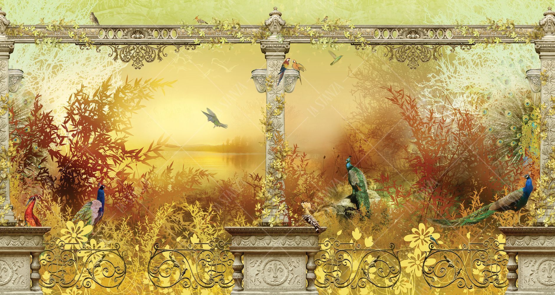 Фреска Панно с павлинами