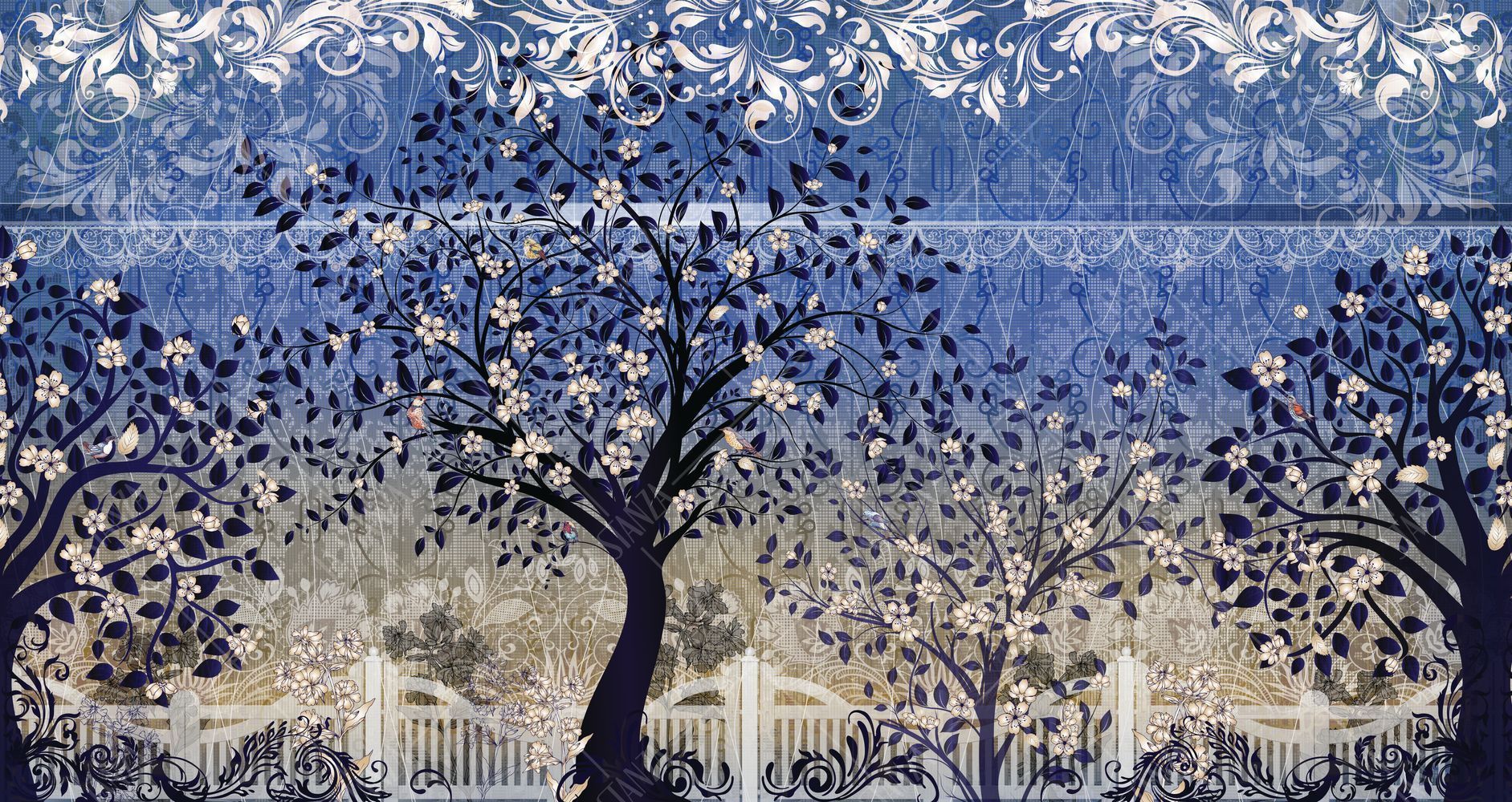 Фреска Панно с цветущими деревьями