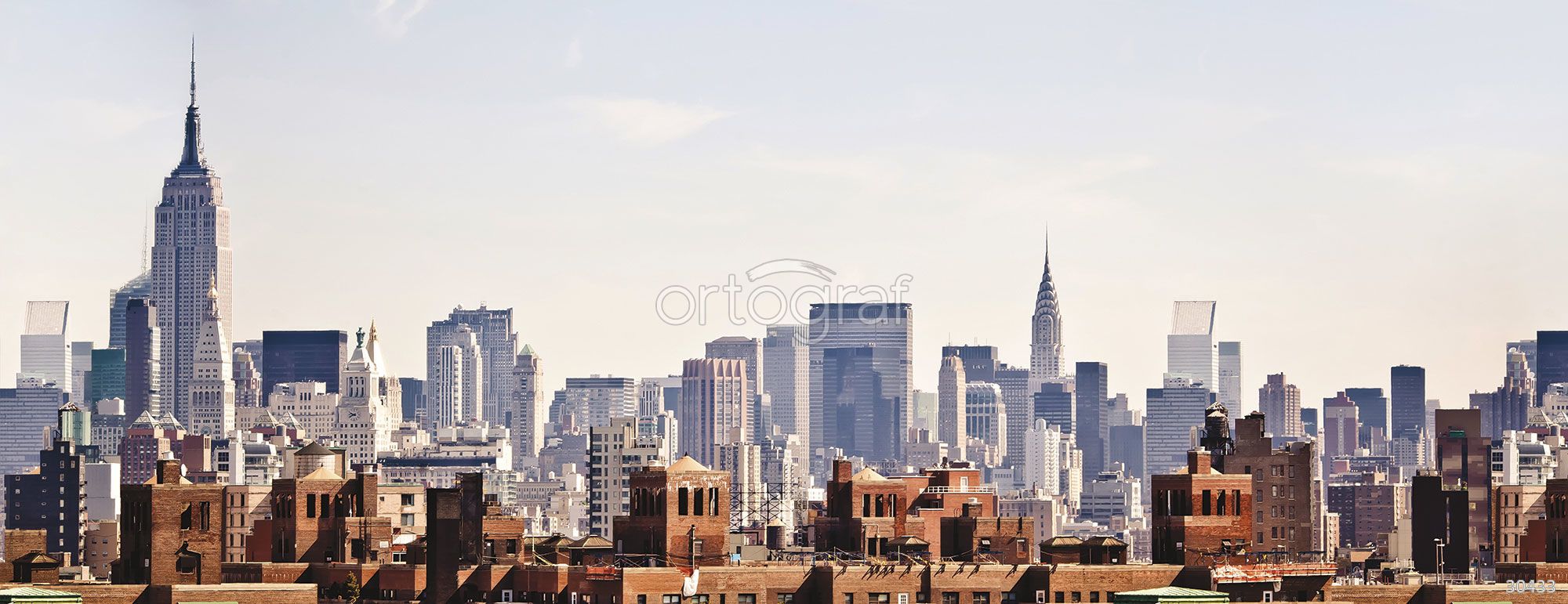 На изображении представлен культовый городской пейзаж с панорамой известных небоскрёбов и густой застройкой на переднем плане. На горизонте выделяются архитектурные символы мегаполиса, отражающие масштаб и динамику современной городской жизни.