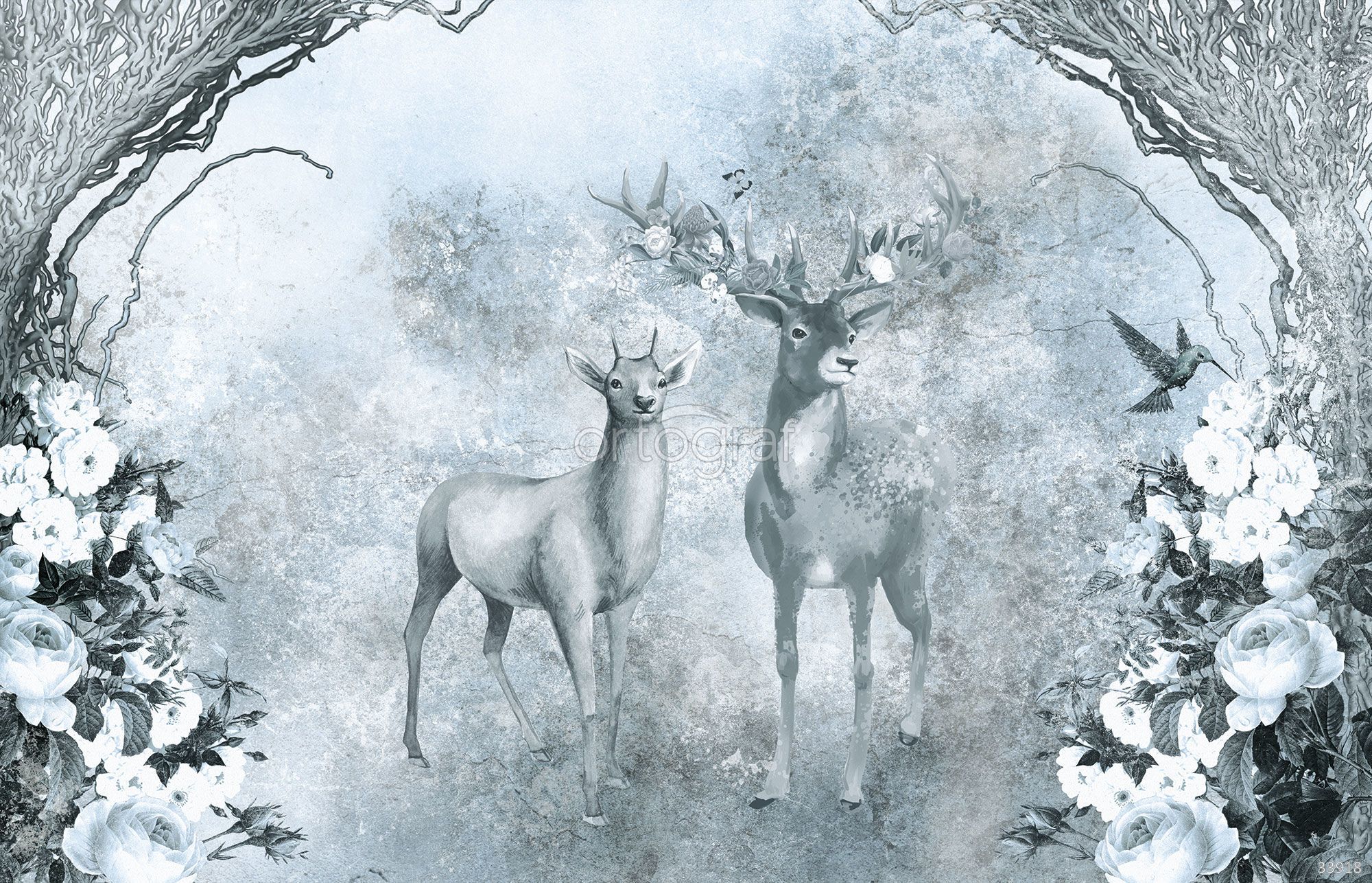 Два грациозных оленя в окружении ветвей и цветов создают сказочную атмосферу леса и уединения, а нежные детали придают сюжету особую утонченность. Такой рисунок наполняет пространство спокойствием, гармонией и природной красотой, оставляя место для мечтаний. Особенно хорошо подойдет для оформления спальни, гостиной или детской комнаты, где важны умиротворение и уют.
