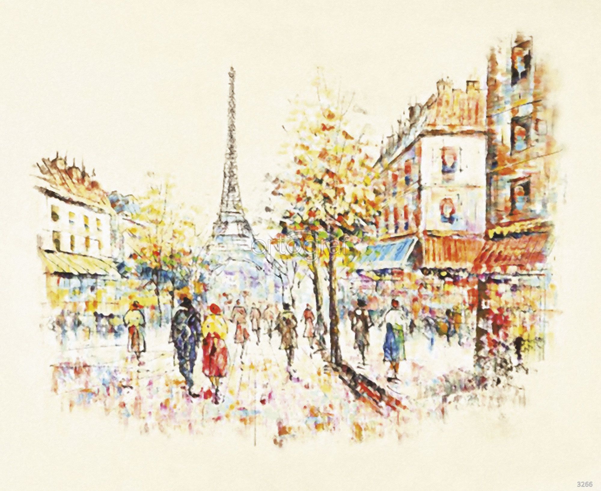 Акварельная работа с изображением улицы Парижа, прохожих, деревьев и Эйфелевой башни на заднем плане. Композиция выполнена легкими мазками с эффектом воздушности и яркости, передает атмосферу оживленного города и романтики. Обои хорошо подойдут для гостиной, столовой или прихожей, где важны ощущение легкости и свежести.